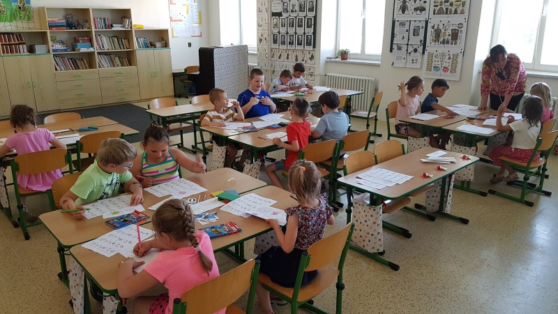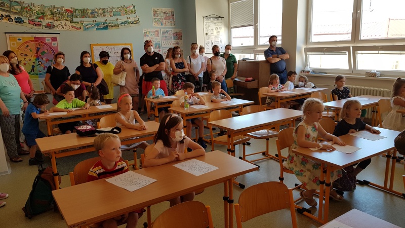 Ve středu 16. 6. 2021 nastal ten velký den, kdy naši budoucí prvňáčci poprvé usedli do školních lavic. Stále ještě zatím předškoláci měli (společně s rodiči) možnost poznat prostředí školní třídy, svoji budoucí třídní učitelku a spolužáky. Děti si vyzkoušely roli žáků a pod vedením třídních učitelek plnily různé úkoly. Všem se školní práce dařila, paní učitelky si nemohly budoucí žáčky vynachválit a již teď se těší, až opět uvítají malé prvňáčky 1.září ve svých třídách.