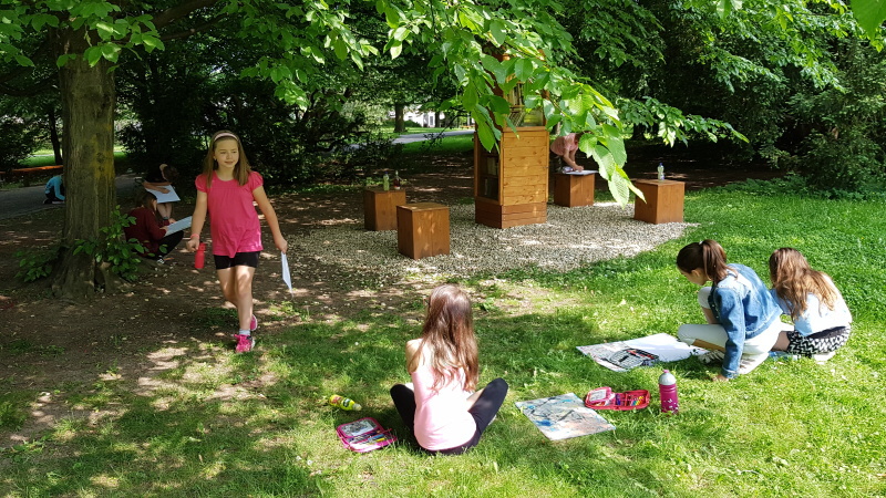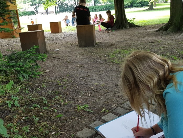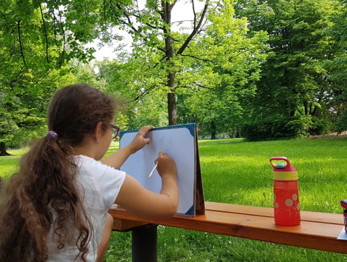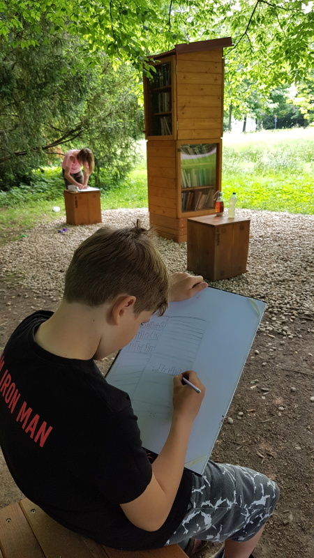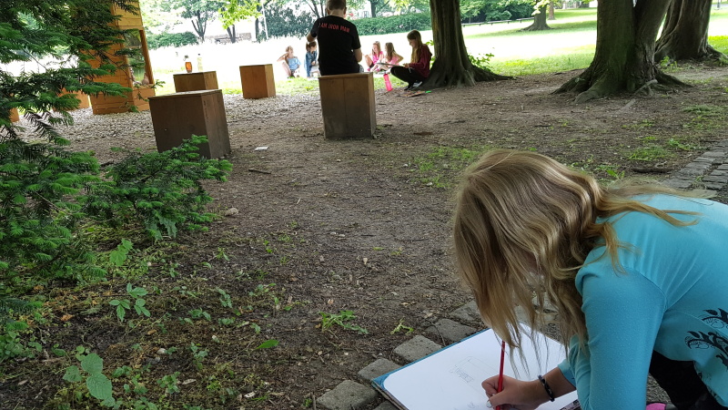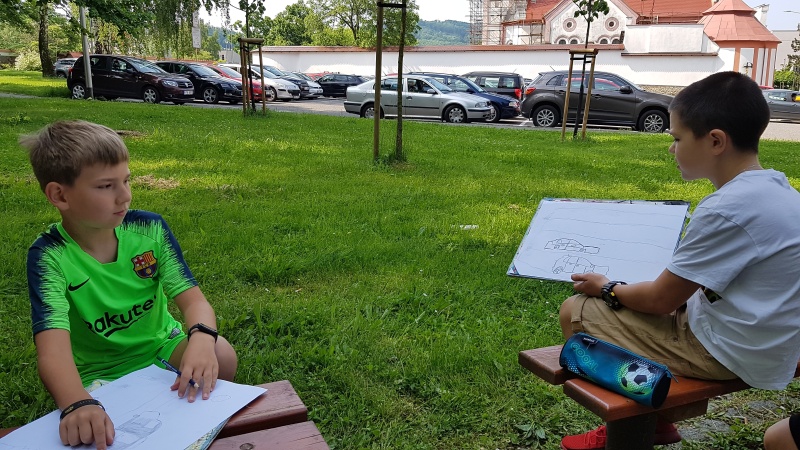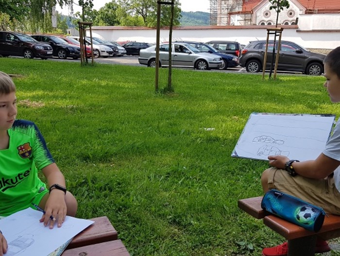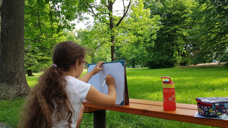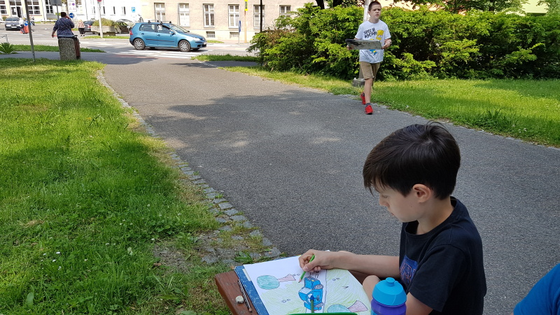 V úterý 8. 6. 2021 vyrazila 4.A na hodinu výtvarné výchovy ven. Byl krásný slunečný den, a tak jsme si sbalili složky, výkresy, tužky, lahve s pitím a vydali jsme se do parku. Nejdříve jsme se prošli, abychom vyhledali objekty vhodné k výtvarnému zpracování. Když si každý vybral podle svého gusta, usadili jsme se na lavičky, na chodník či do trávy a začali kreslit. Jak se nám dařilo, si můžete prohlédnout v galerii.