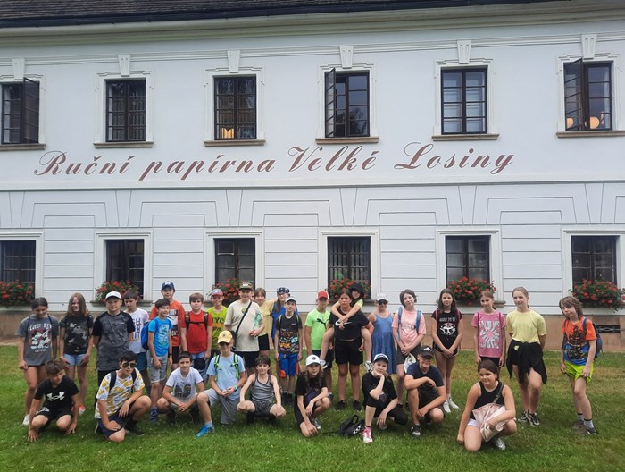 V pondělí jsme si vyšlápli na rozhlednu na Bukovém kopci a seznámili se s místní pověstí z doby 30 leté války. V úterý jsme navštívili zámek Velké Losiny a zjistili, že majiteli panství byli Žerotínové a to nám připomnělo náš novojičínský Žerotínský zámek. Další den jsme našli poučení o ruční výrobě papíru a Tonda Bezděk následně vše shrnul ve výborném referátě. Čtvrteční horko jsme pak trávili koupáním a jízdou na tobogánu v termálech Velké Losiny.
