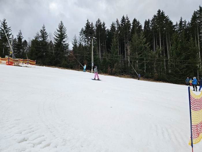 I přes nepříznivé počasí v podobě nezvykle vysokých teplot a nedostatku sněhu odvedli vlekaři skvělou práci a pro děti každý den připravili sjezdovku tak, aby výcvik mohl probíhat. Také instruktoři se ukázali jako zkušení profesionálové a naučili děti vše, co příroda dovolila.