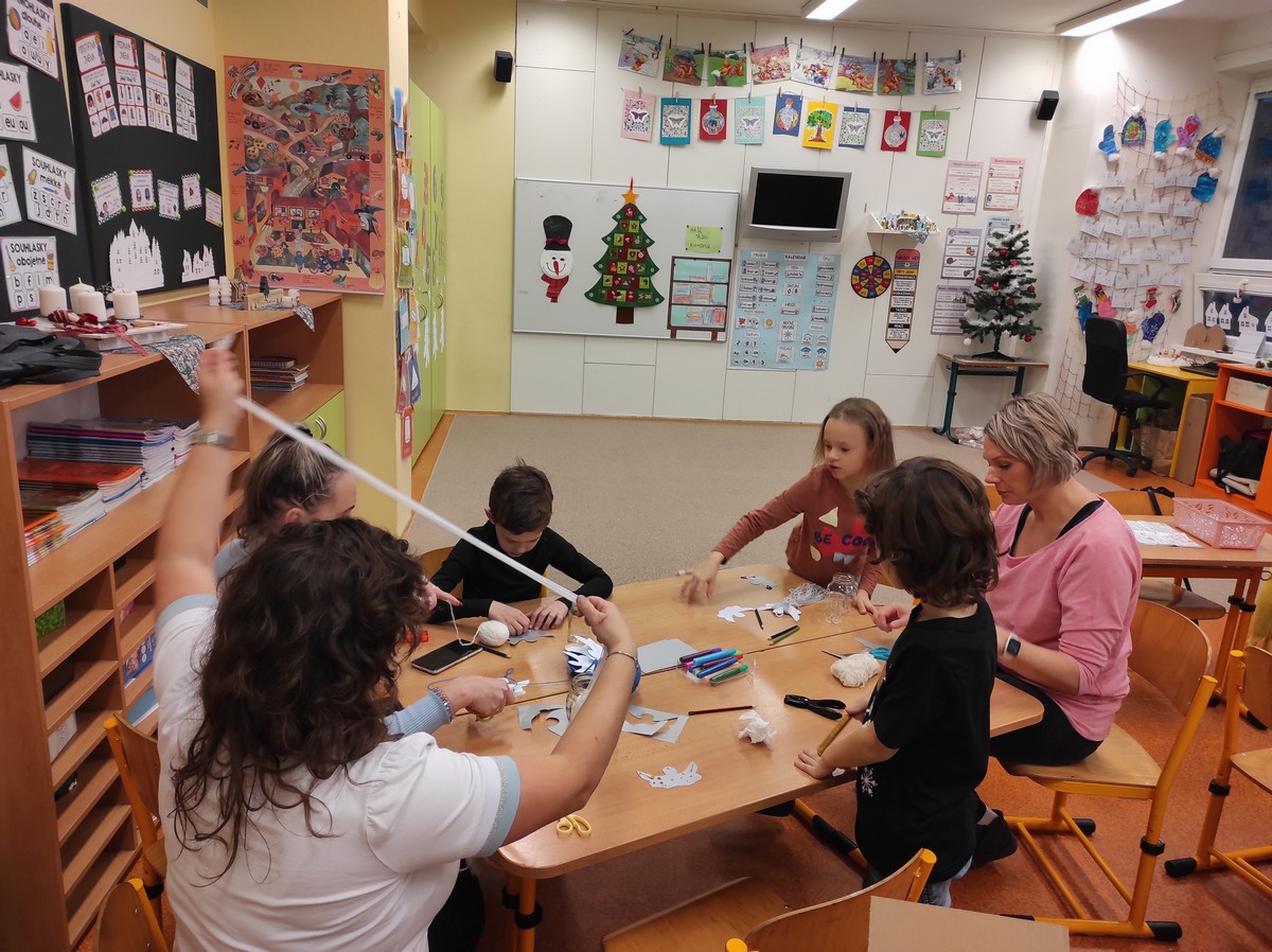 Milé předvánoční setkání se ve čtvrtek 14. prosince 2023 uskutečnilo ve druhých třídách a také v 1.B. Děti si pro své rodiče připravily krátké vystoupení, které navodilo tu správnou atmosféru. Nechyběly koledy, tanec ani básničky s vánoční tematikou. Pak už se děvčata a chlapci společně s rodiči pustili do tvoření. Nejrůznější vlastnoručně vyrobené ozdoby na stromeček a také například svícínky budou v jejich domovech dotvářet vánoční náladu. Jsme rádi, že si rodiče v předvánočním shonu našli čas a užili si s dětmi toto milé odpoledne.