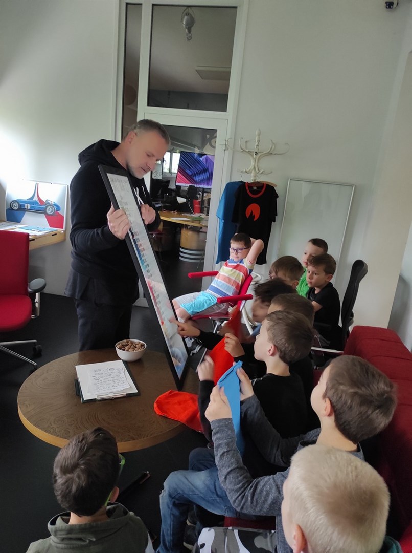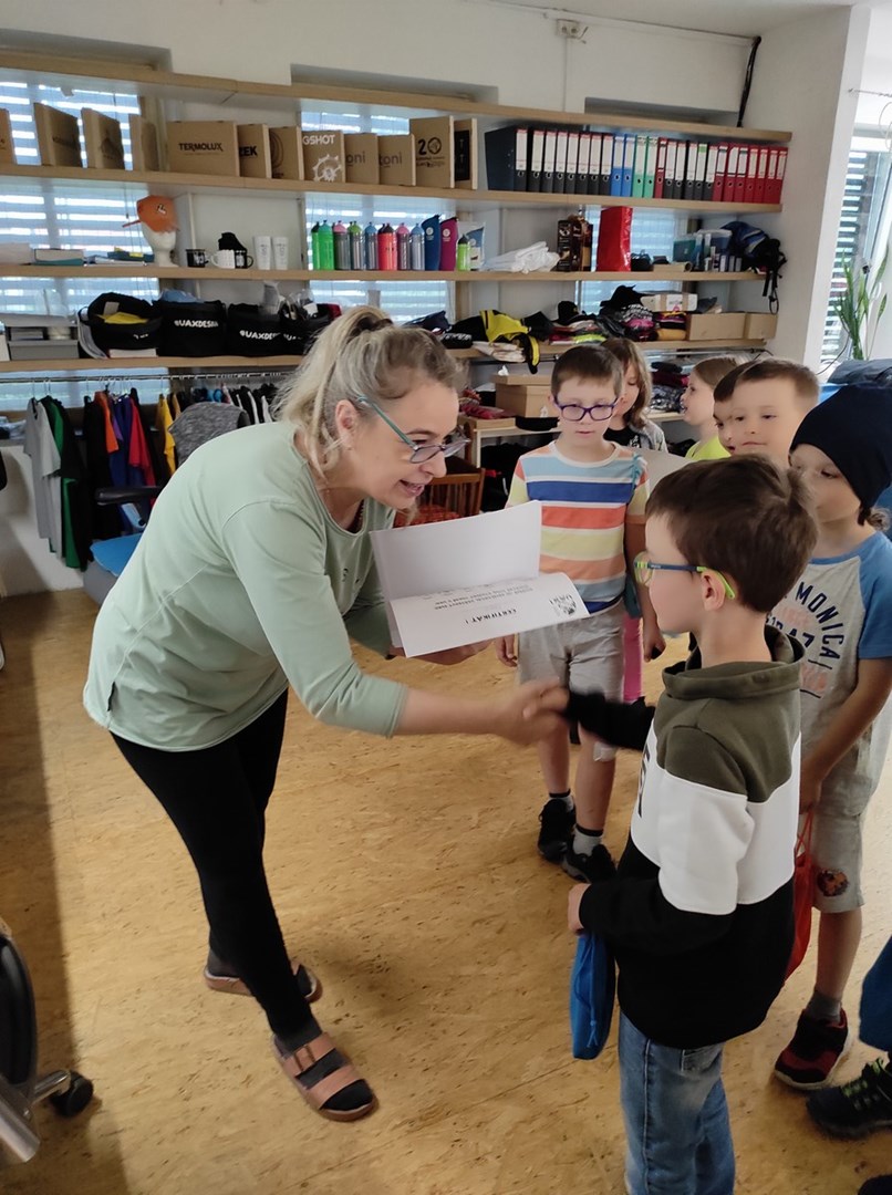 V květnu měli kluci a holky z druhých tříd možnost navštívit firmu UAX v Bernarticích nad Odrou. Zde děti kromě jiného viděly celý proces výroby triček. Prohlídka začala v designovém studiu, kde jsme se dozvěděli informace o grafice, a také to, jak samotný potisk vzniká. Rovněž jsme zjistili, kde všude můžeme grafiku UAX vidět. Poté jsme pokračovali do šicí dílny, kde si děti vyzkoušely obkreslování střihů na čepici a také stříhání látky. Švadlenky nám pak na ukázku čepici ušily a ukázaly nám, jak se šije tričko. Společně jsme přešli k balení balíčků a vyzkoušeli jsme si poskládat opravdu velkou spoustu krabic. Pak už na nás čekal tiskař v tiskařské dílně. Každý si sám potiskl bavlněný pytlík, který si odnesl domů jako dárek. Ale to nebylo vše. Všichni jsme také dostali "Certifikát tiskaře" a také fix s logem UAX. Exkurze byla skvělá a všichni jsme si ji moc užili.