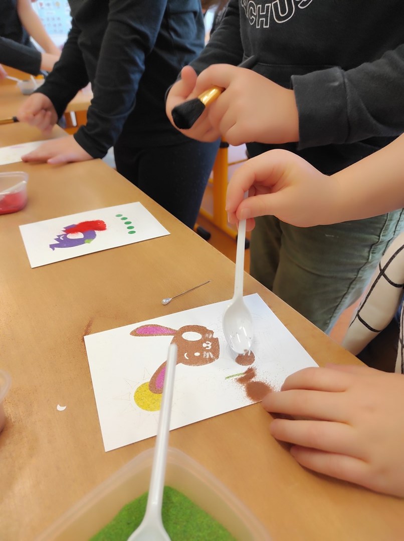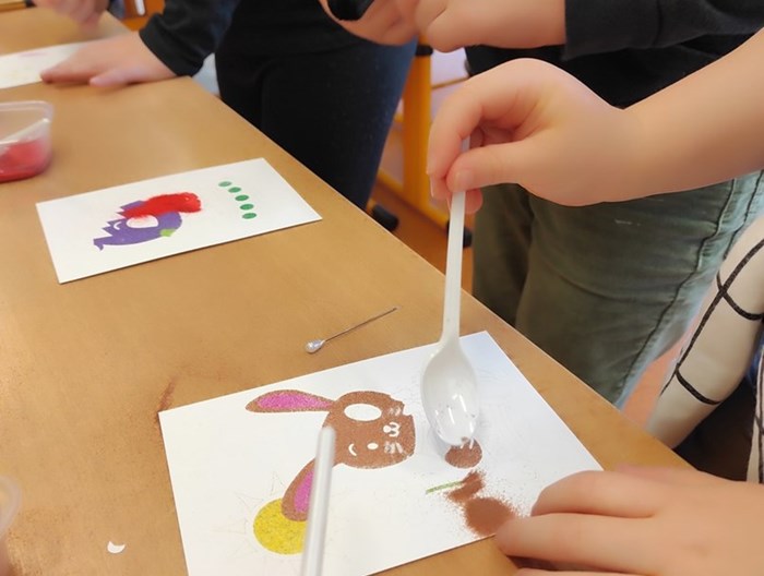 Ve středu před velikonočními prázdninami jsme si společně užili projektový den na téma Velikonoce. Kluci a holky se seznámili s tradicemi a zvyky Velikonoc, naučili se nové básničky. Byl čas také na výrobu velikonočního přáníčka a v neposlední řadě jsme si mohli opět vyzkoušet netradiční techniku, a to pískování obrázků. Děti tato prace velmi bavila a domů si odnášely krásné obrázky. Celý den se nám velmi vydařil a už teď se těšíme na další akce.