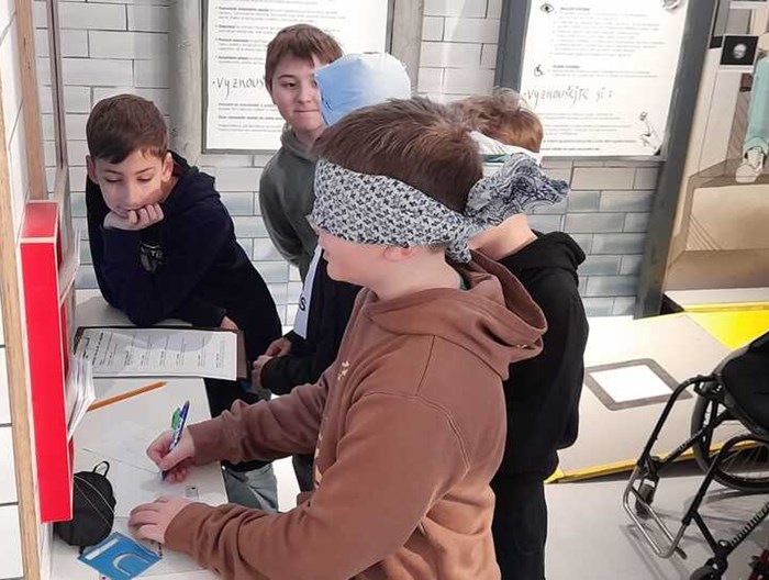 Čtvrťáci ve středu navštívili Obecní dům v Opavě, kde se koná interaktivně-edukativní výstava Lidé odvedle, kterou připravila nadace SIRIUS.