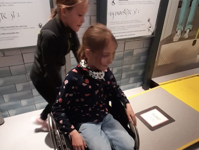 Výstava hravou formou přibližuje život lidí se zrakovým, sluchovým a tělesným postižením. Děvčata a chlapci se prostřednictvím mimořádného osobního prožitku vydali na neobvyklý výlet. Během něj si vyzkoušeli, jaké to je cestovat a někdy hůře slyšet, jindy mít omezenou pohyblivost nebo dokonce při plnění některých úkolů nevidět. Zkrátka, jak máme složitý svět a s jakými „nástrahami“ se občas musíme potýkat, pokud máme nějaký hendikep.