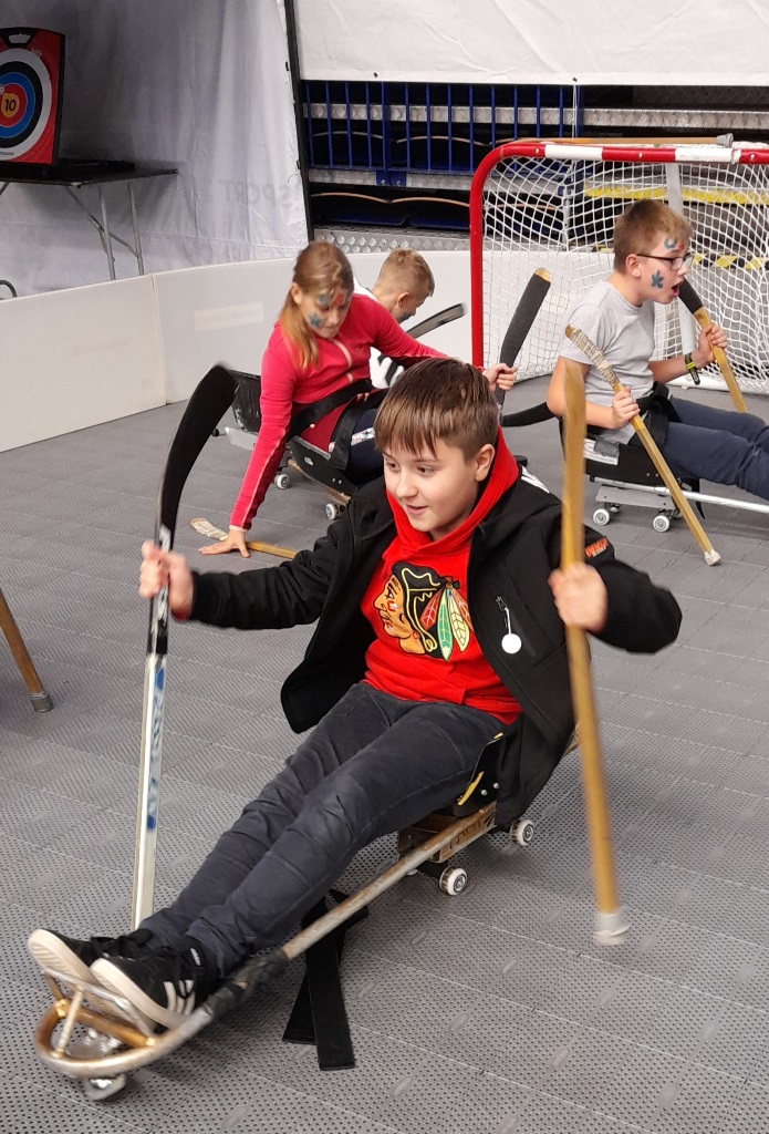 Pozvání pořadatelů z naší školy využila třída 4.A, která se ve čtvrtek 10. října 2024 vydala na utkání Itálie – USA. Děvčata a chlapci během celého zápasu nejen neúnavně fandili, ale v Ostravar Aréně si také vyzkoušeli celou řadu zajímavých aktivit (například střelbu na branku, stabilitu na speciálně upravených saních – sledgi či mobilitu na invalidních vozících). To vše pod dohledem skvělého maskota, tučňáka Samsona.