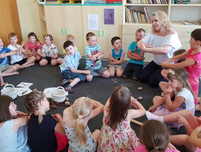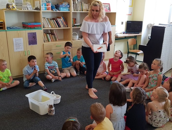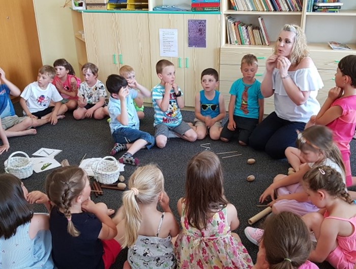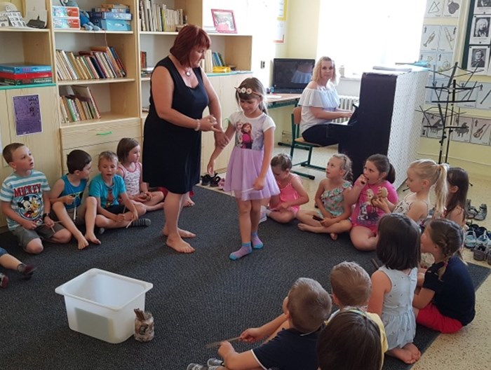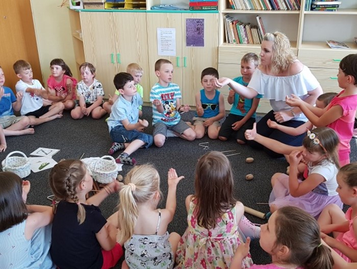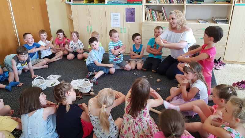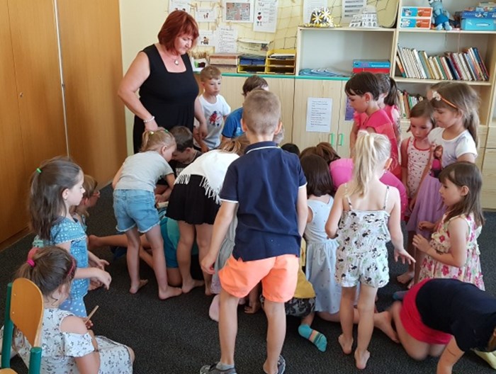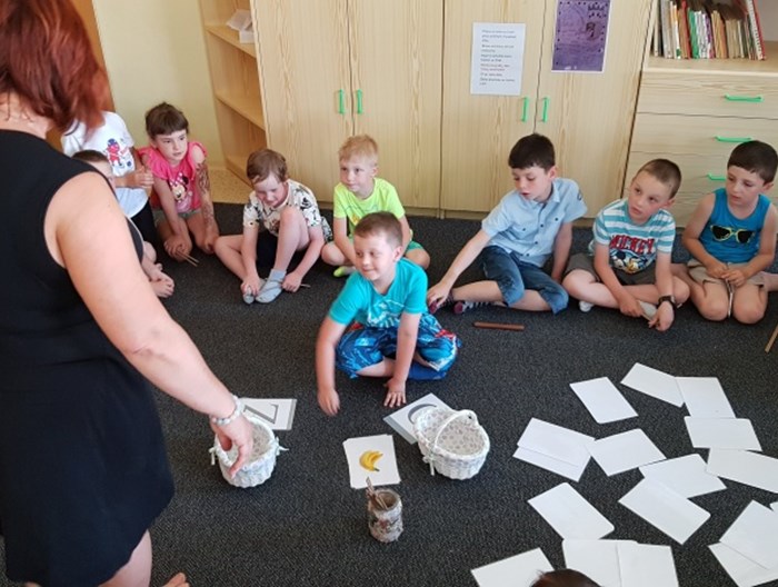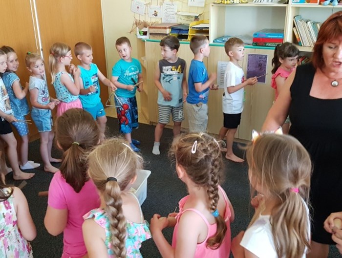 Zazpívali jsme si známé písničky, k rytmizování jsme využili Orffovy hudební nástroje a některé z písní děti ztvárnily pohybově. Zahráli jsme si na tržnici a do košíčků jsme třídili ovoce a zeleninu. Děti si také udělaly krátkou prohlídku školy.
