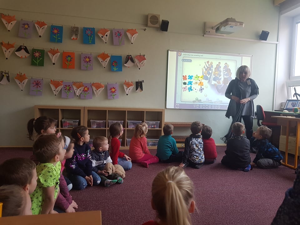 Celé toto setkání se neslo v duchu příjemně stráveného odpoledne. Děti si spolu s rodiči prošly čtyři stanoviště. Začali jsme angličtinou, hrami s anglickými slovíčky, počítáním, zpíváním a ukázkou práce s interaktivní tabulí.