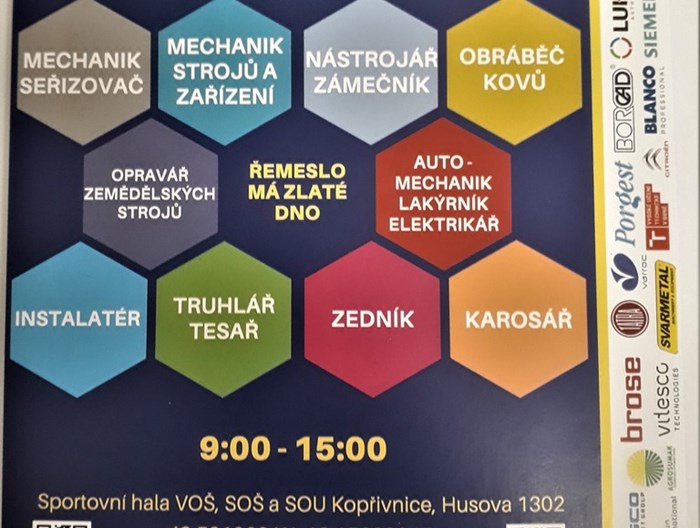 Děvčata a chlapci z devátých tříd se v tomto období stále častěji zamýšlejí nad tím, na jaké studijní nebo učební obory, které jim nabízejí střední školy, podají v průběhu školního roku své přihlášky. Jednou z akcí, která by aspoň části z nich mohla rozhodování usnadnit, je tradiční přehlídka technických profesí „Řemeslo má zlaté dno“, na jejímž pořádání se podílí Kontaktní pracoviště Úřadu práce v Novém Jičíně a Kopřivnici, VOŠ, SOŠ a SOU Kopřivnice, Střední škola technická a zemědělská Nový Jičín, město Kopřivnice a řada zaměstnavatelů z celého okresu.