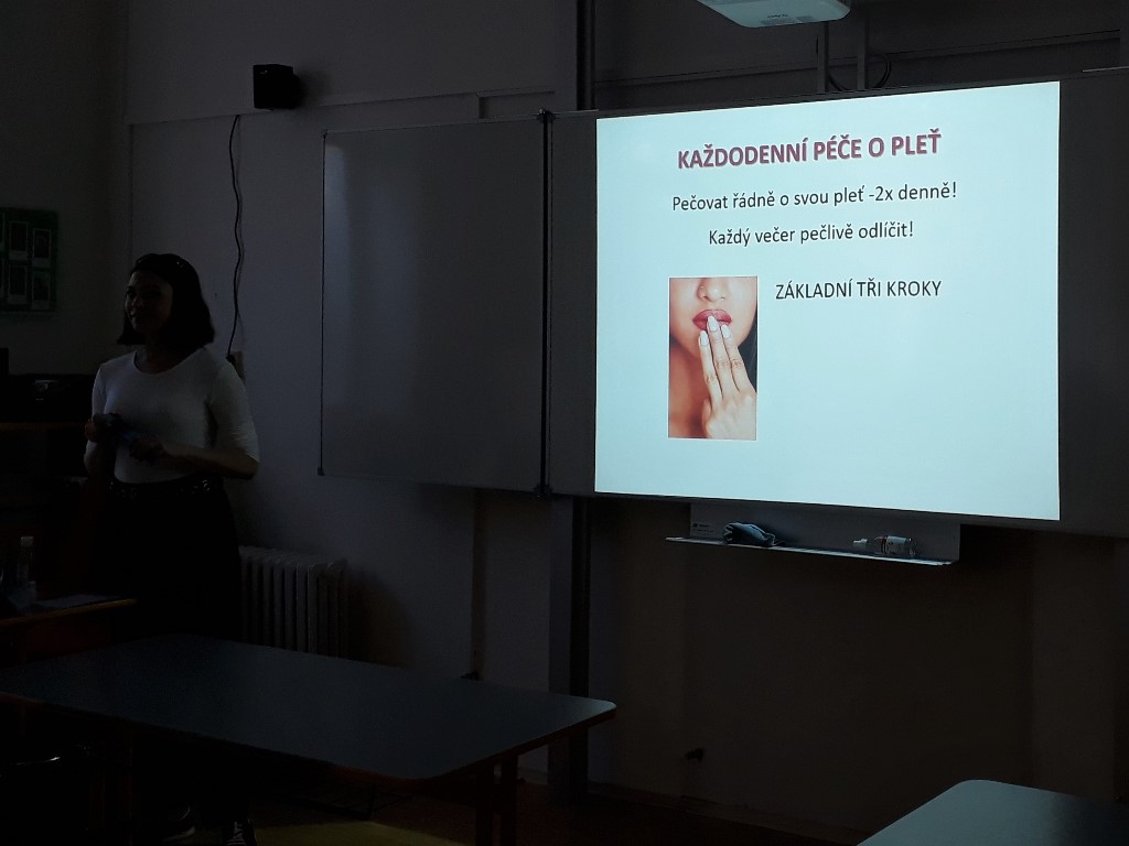 Během dvou hodin, které díky zajímavému tématu utekly holkám daleko rychleji než obvykle, se děvčata například dozvěděla, jaké existují druhy a typy pletí, co všechno naši pleť ovlivňuje a jak o ni správně pečovat či jaké druhy líčení zvolit pro různé příležitosti. Velmi přínosná byla také ukázka přirozeného make-upu.
