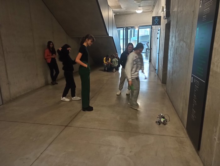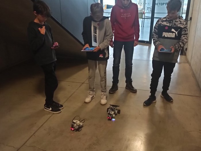 Ve druhé části programu si ve skupinkách sestavili a naprogramovali svého robota. Výsledek svého snažení, jak robot funguje, si poté vyzkoušeli v prostorách chodeb budovy Světa techniky. Zapojili se opravdu všichni žáci, přičemž zjistili, že naprogramovat správně robota, aby plnil zadané pokyny, není nic jednoduchého.