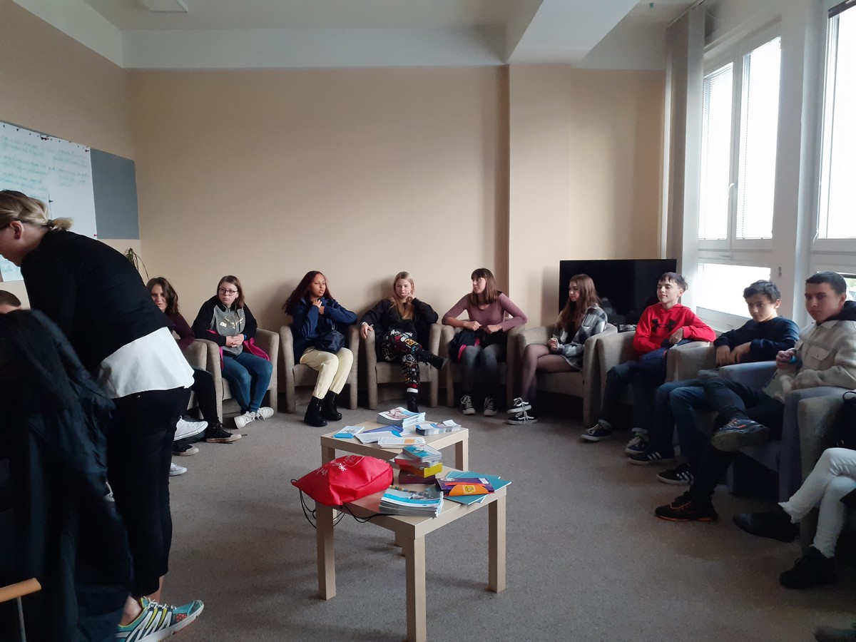 Pracovnice centra žáky seznámily s náplní práce psychologa a s tím, jak probíhá příprava na toto povolání. Ve druhé části exkurze si žáci mohli vyzkoušet metody, které při své práci psychologové používají.