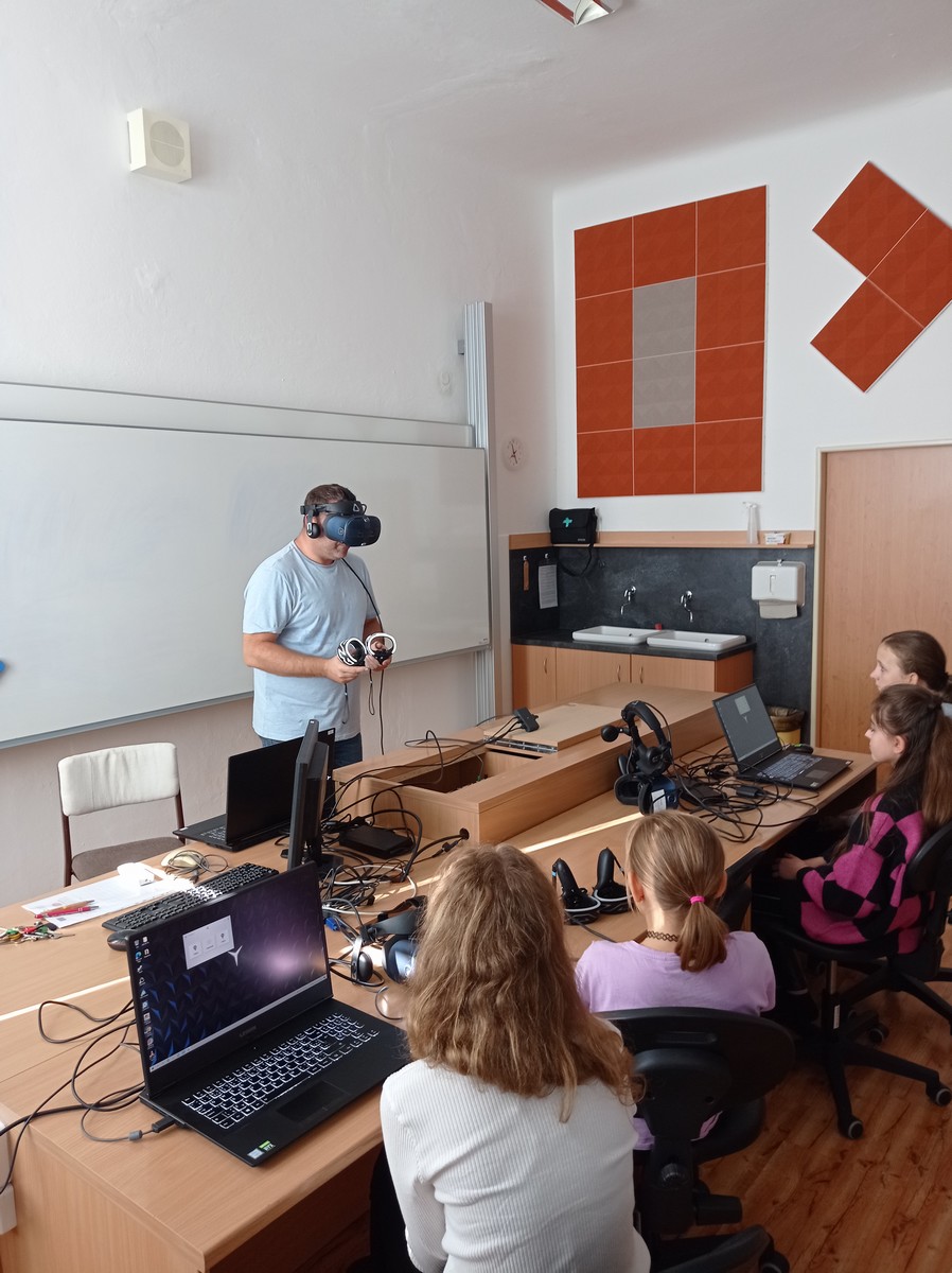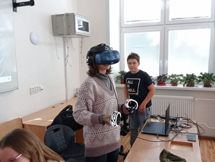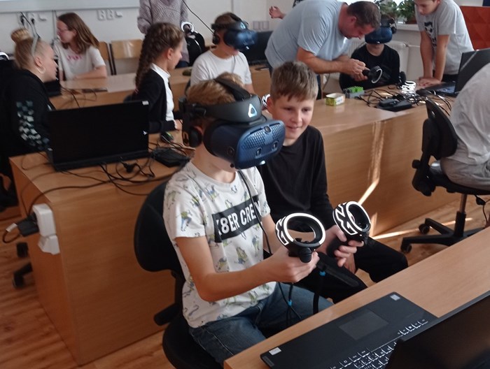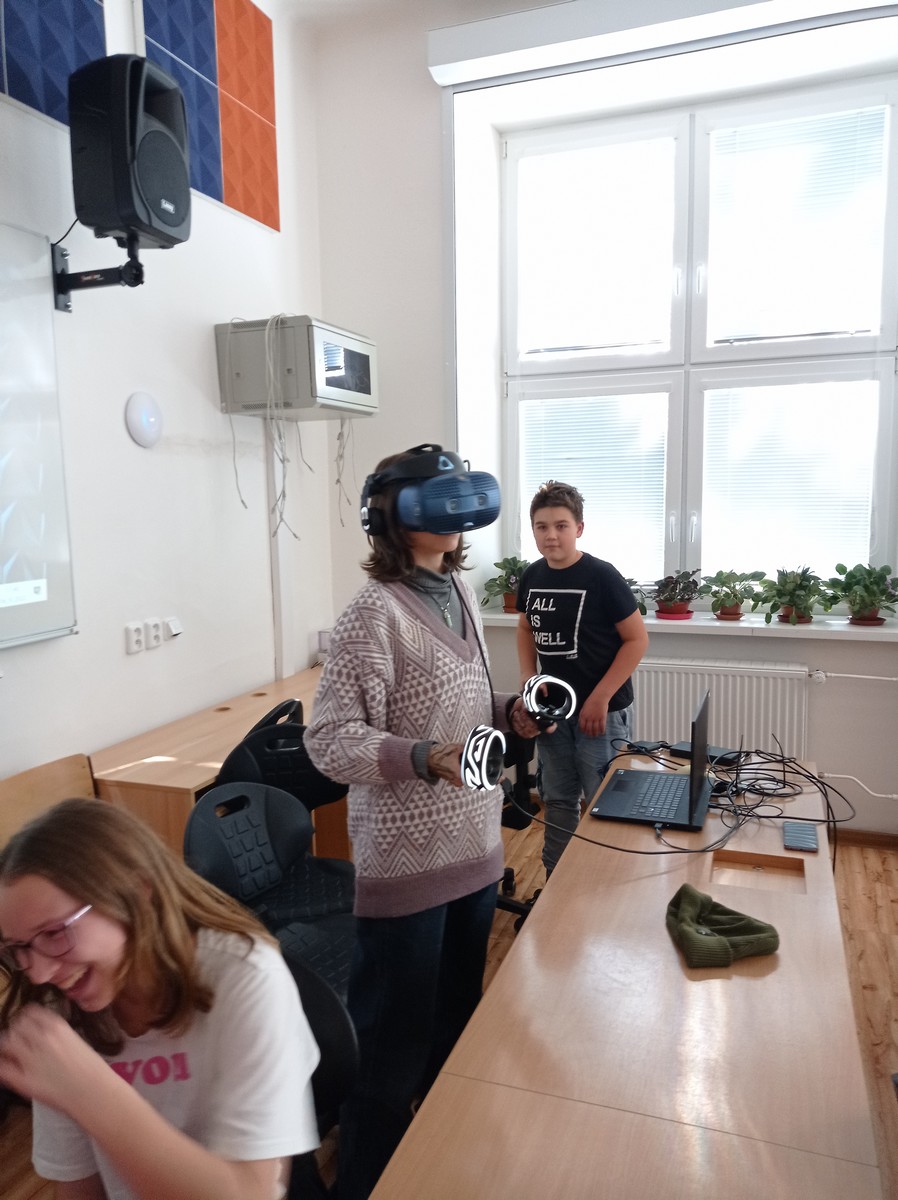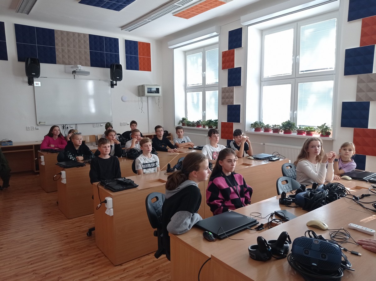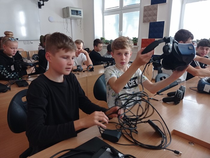 Let vesmírem, průzkum planet zblízka, mečové souboje nebo cestování napříč celým světem? Žádný problém. Ve čtvrtek 6. října se totiž žáci 7.C vydali v rámci hodin informatiky na novojičínské gymnázium. Tam měli příležitost seznámit se stanicemi virtuální reality a pomocí brýlí se přesunout do světů a realit, o kterých se jim ani nesnilo. V první části interaktivní hodiny se žáci za pomocí Patrika Kočího, zástupce ředitele gymnázia, naučili, jak virtuální realita vůbec funguje, jak ji správně připojit k počítači a jak se správně ony "kouzelné" brýle nastavují. Poté už se ponořili do virtuálna, na které si všichni museli postupně zvyknout, protože rozeznat fantazii od reálného světa pak není vůbec jednoduché. Nakonec si vyzkoušeli několik vzdělávacích aplikací, které byly pro děti nejen poučením, ale taky skvělou zábavou. Proto si celá třída v listopadu ještě zážitek s virtuální realitou zopakuje.