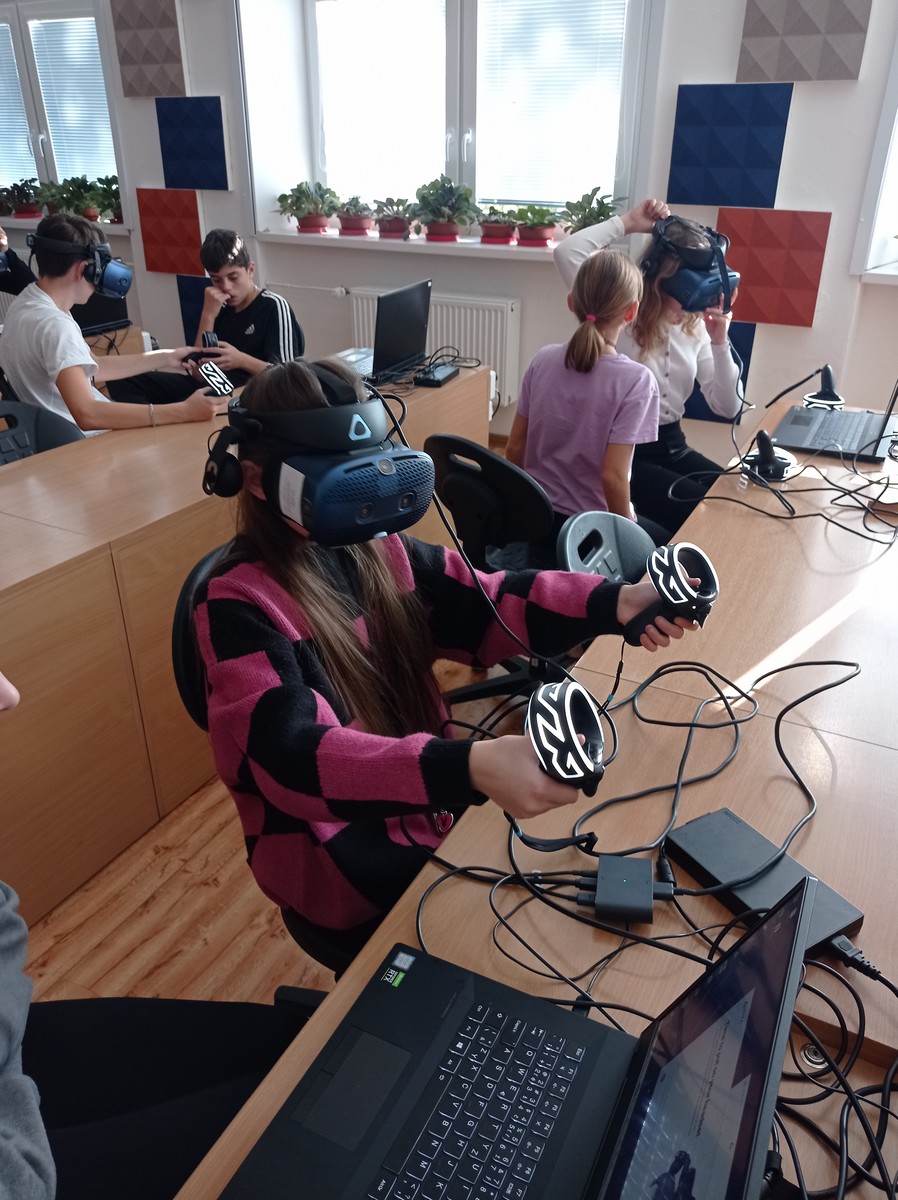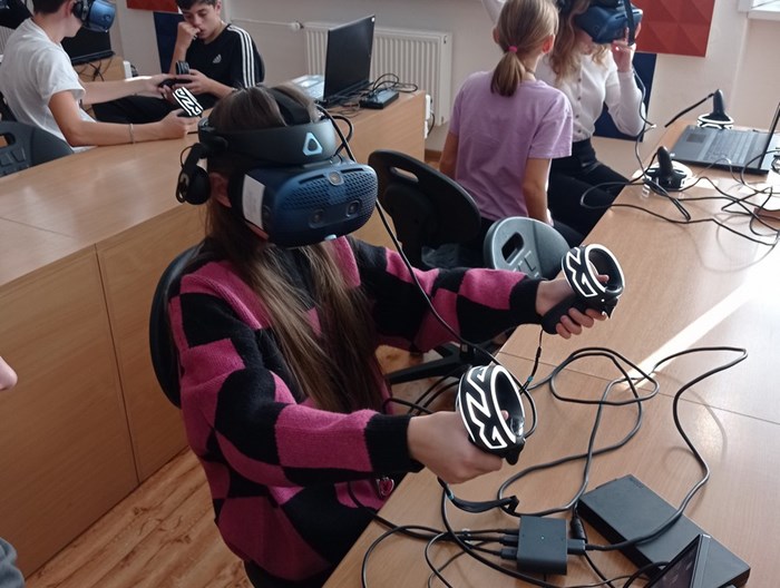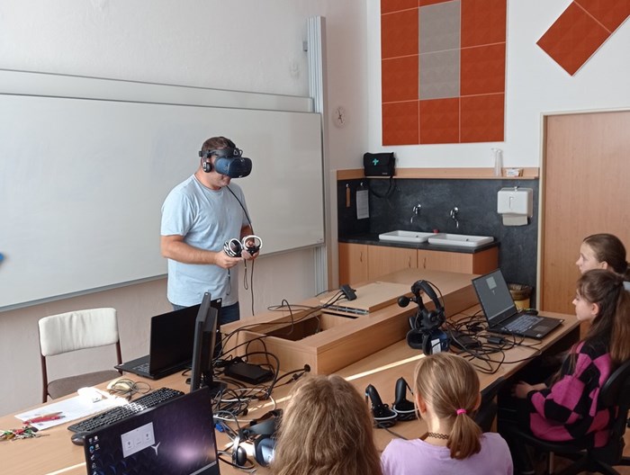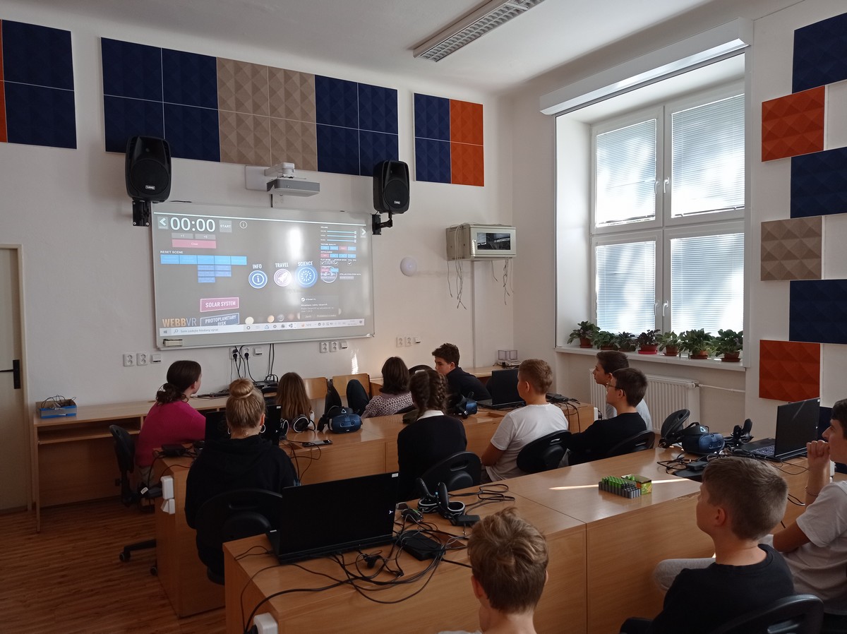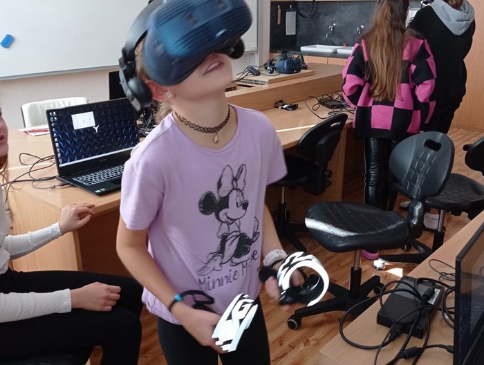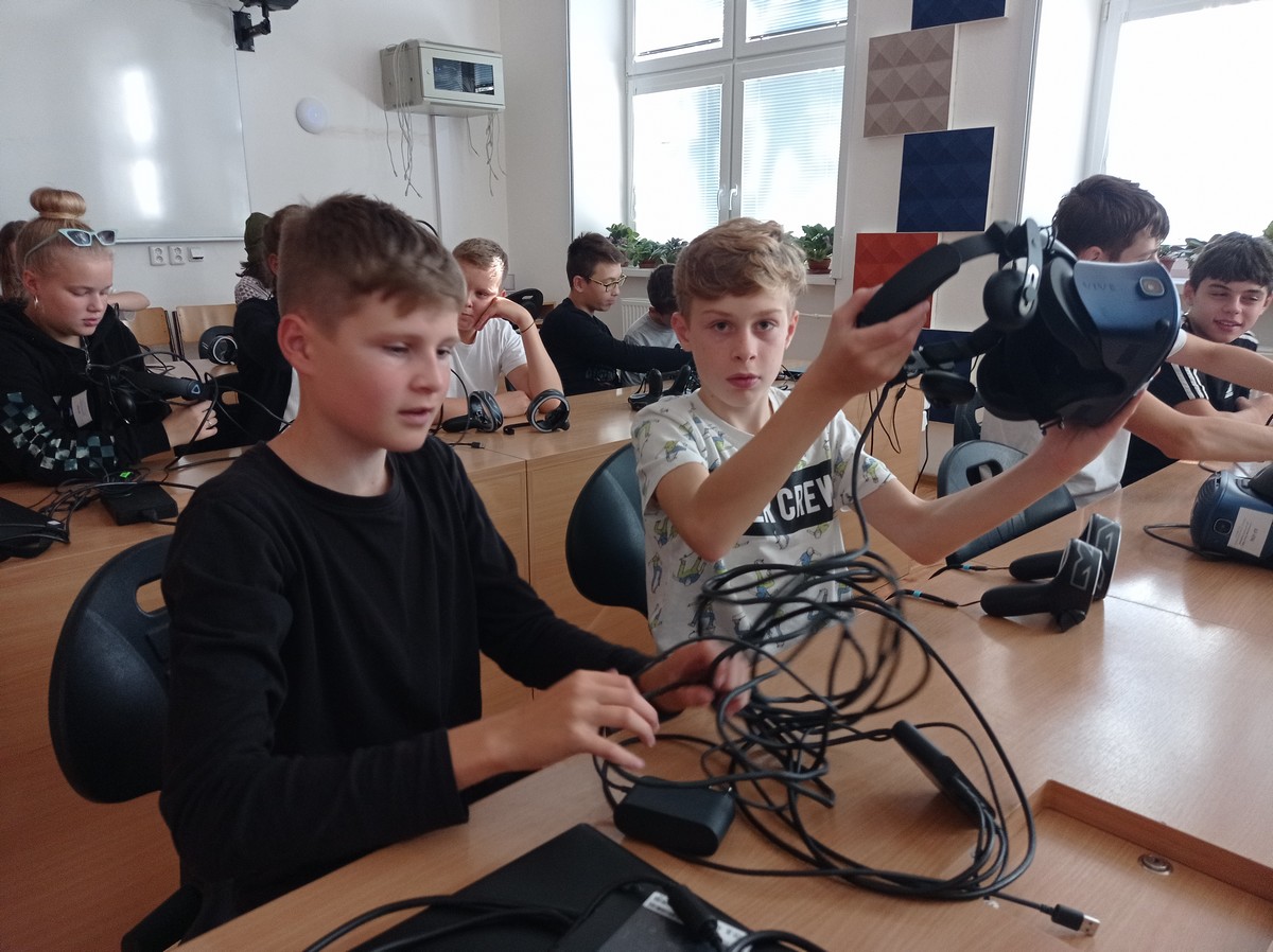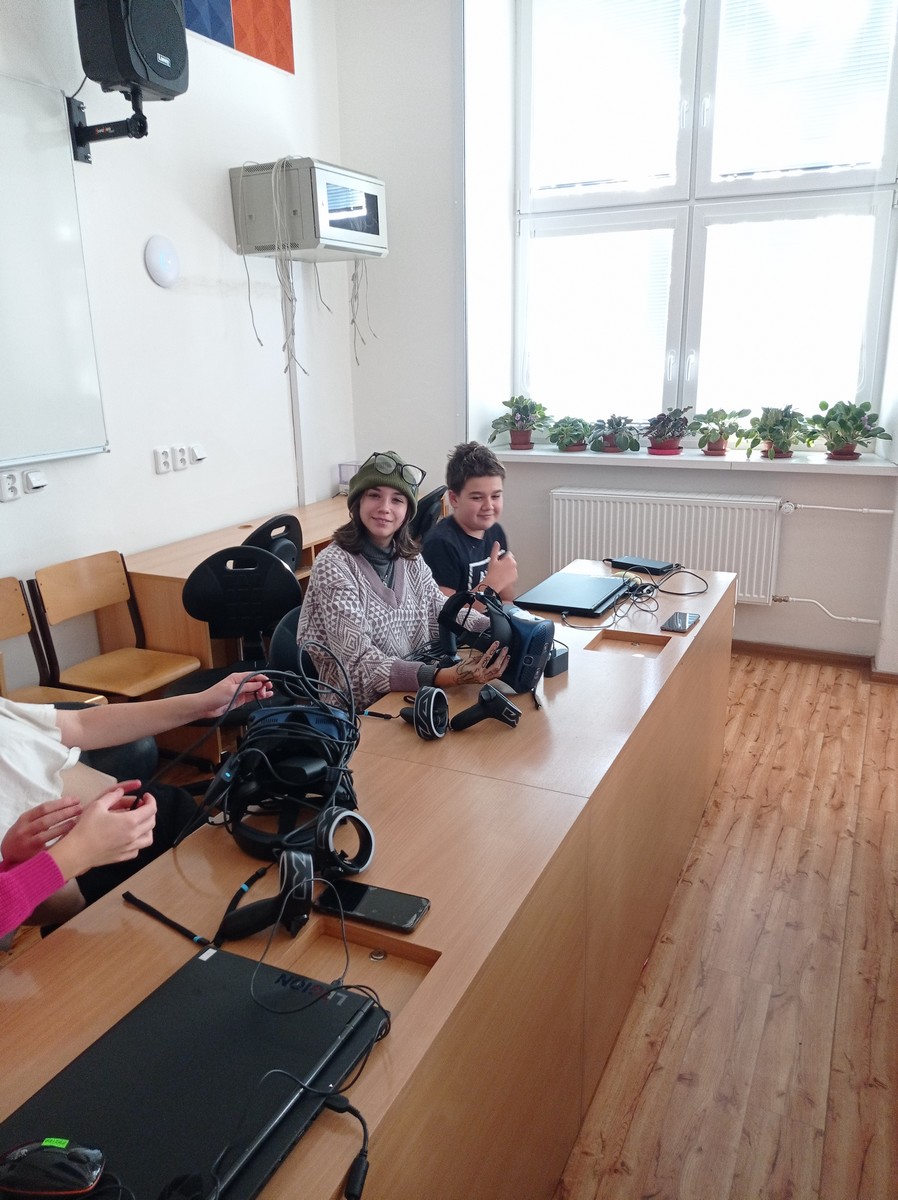 Let vesmírem, průzkum planet zblízka, mečové souboje nebo cestování napříč celým světem? Žádný problém. Ve čtvrtek 6. října se totiž žáci 7.C vydali v rámci hodin informatiky na novojičínské gymnázium. Tam měli příležitost seznámit se stanicemi virtuální reality a pomocí brýlí se přesunout do světů a realit, o kterých se jim ani nesnilo. V první části interaktivní hodiny se žáci za pomocí Patrika Kočího, zástupce ředitele gymnázia, naučili, jak virtuální realita vůbec funguje, jak ji správně připojit k počítači a jak se správně ony "kouzelné" brýle nastavují. Poté už se ponořili do virtuálna, na které si všichni museli postupně zvyknout, protože rozeznat fantazii od reálného světa pak není vůbec jednoduché. Nakonec si vyzkoušeli několik vzdělávacích aplikací, které byly pro děti nejen poučením, ale taky skvělou zábavou. Proto si celá třída v listopadu ještě zážitek s virtuální realitou zopakuje.