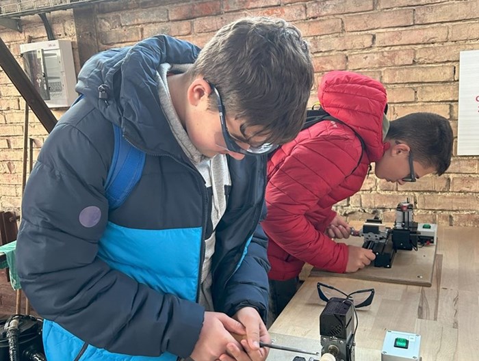 Poté se obě skupiny setkaly v hale U6 – Malém světě techniky. Tato nově zrekonstruovaná expozice nabízí interaktivní atrakce spojené s vizí spisovatele Julese Verna, různými způsoby dopravy, žáci si mohli otestovat potrubní poštu, vyzkoušet obráběcí dílnu i kovodílnu. Největší zájem byl mezi budoucími řidiči o různé dopravní trenažéry.