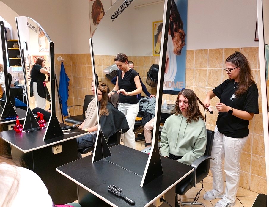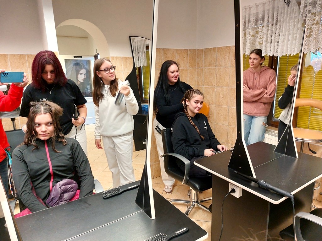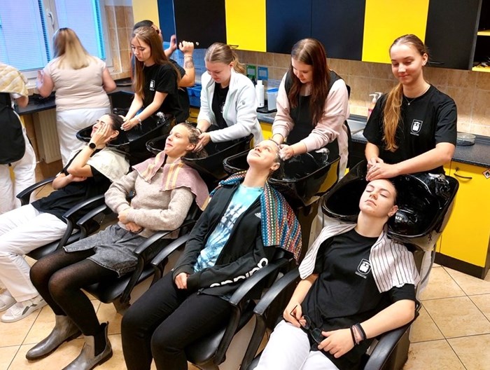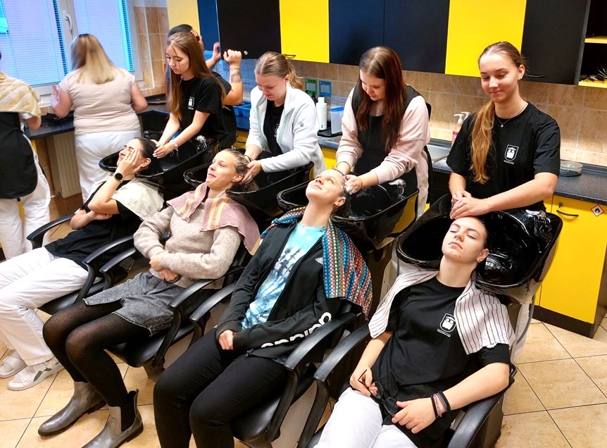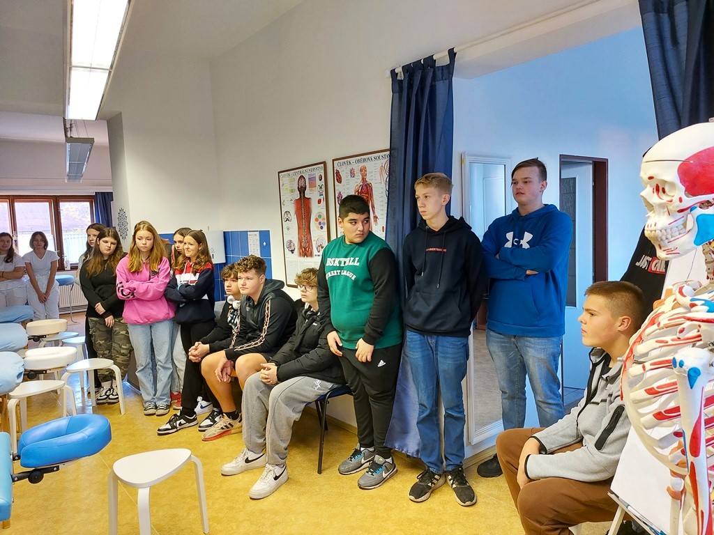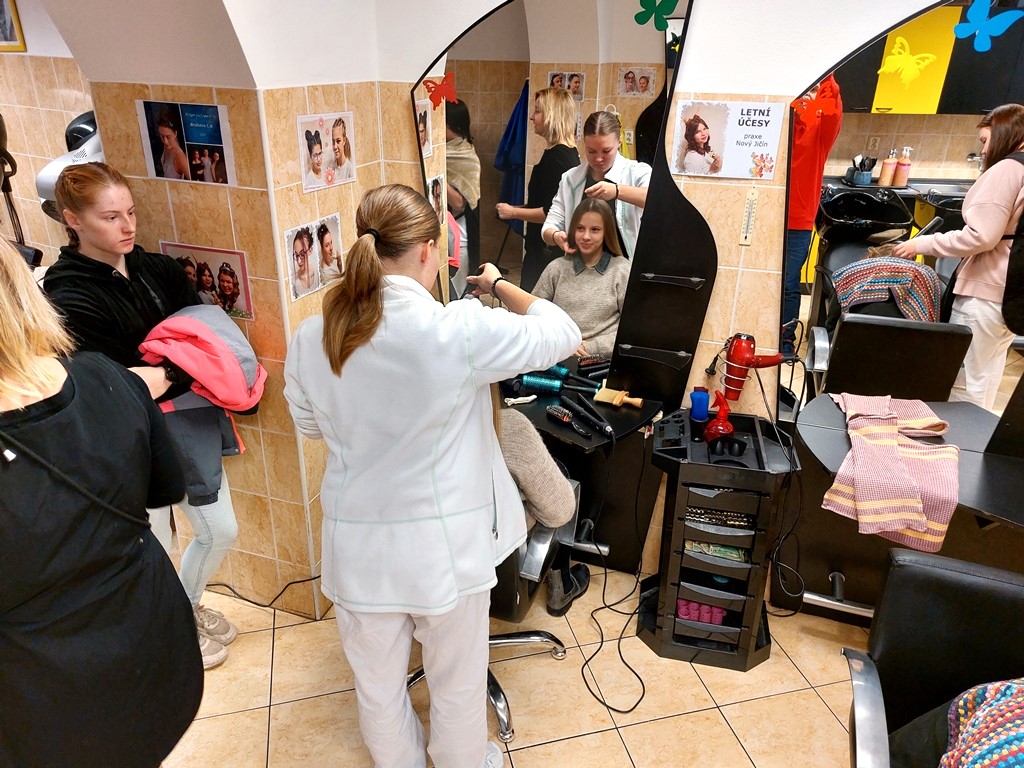 V úterý 7. listopadu 2023 jsme využili nabídky Střední školy Odry a v rámci předmětu „Pracovní činnosti“ jsme se šli s děvčaty a chlapci z 9. tříd podívat, jak probíhá praxe budoucích masérů a kadeřníků na odloučeném pracovišti - Středisku praktického vyučování v Novém Jičíně. Po milém přivítání a úvodních informacích o SŠ Odry a tzv. „službových oborech“, na které se tato škola zaměřuje, se holky a kluci od p. mistrových odborného výcviku dozvěděli, jak probíhá příprava na výše zmiňované dvě profese, a zhlédli několik praktických ukázek (některých se sami aktivně účastnili). Mnozí se pak vraceli na další vyučování na naši Tyršovku vylepšení a zkrášlení. A jestli se někteří deváťáci nechali touto zajímavou návštěvou inspirovat? To se uvidí v únoru při vyplňování přihlášek na střední školy.