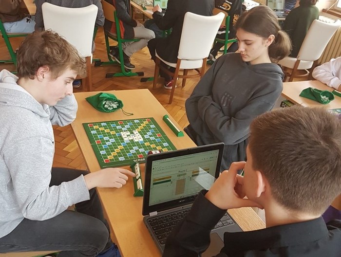 Ve středu 7.února jsme se na příborském Masarykově gymnáziu zúčastnili scrabblového turnaje. Ten je určen žákům a žákyním základních škol a nižších ročníků víceletých gymnázií. Za naši školu se zúčastnily Hana Zemánková a Anna-Marie Lapišová z 9.C. Každý účastník hrál tři kola po čtyřiceti minutách a bylo zjevné, že kolo od kola se většina, včetně našich žákyň, výsledkově zlepšovala. Našim žákyním se nakonec podařilo umístit na předních místech výsledkové tabulky a v široké konkurenci dvaceti škol z celého okresu vybojovaly pro naši školu krásné 2. místo. Moc gratulujeme!