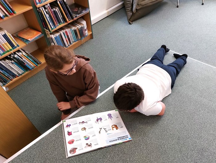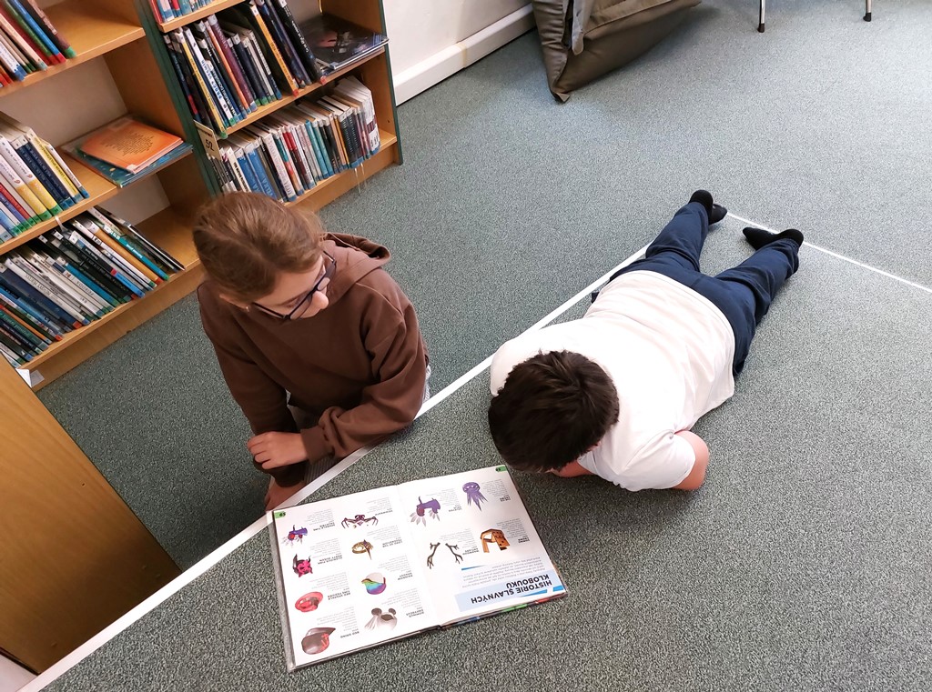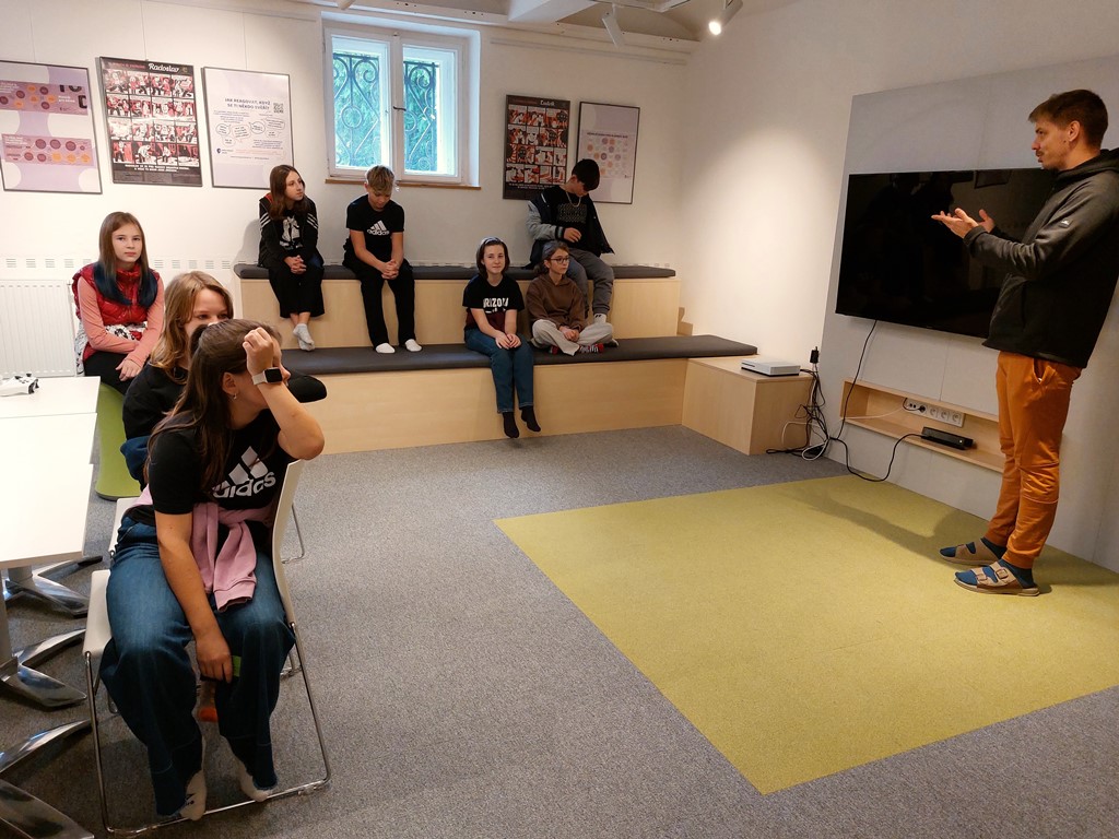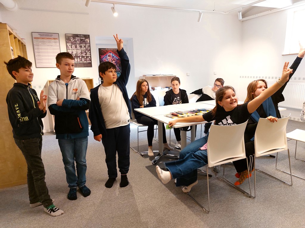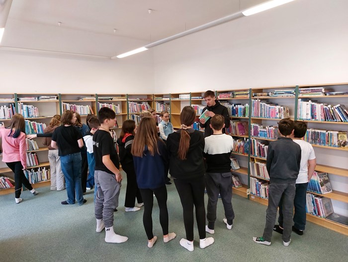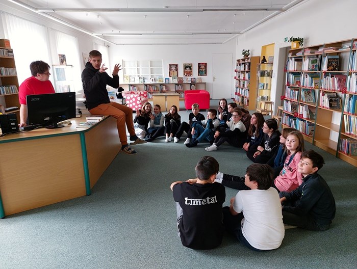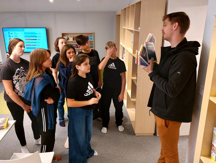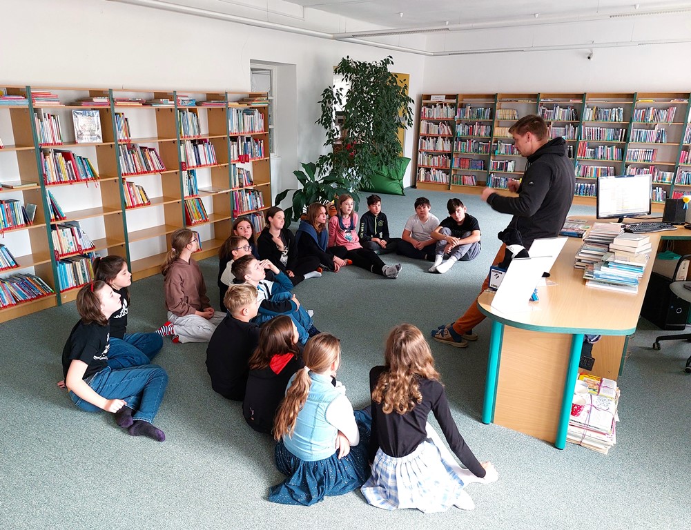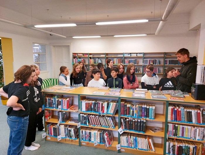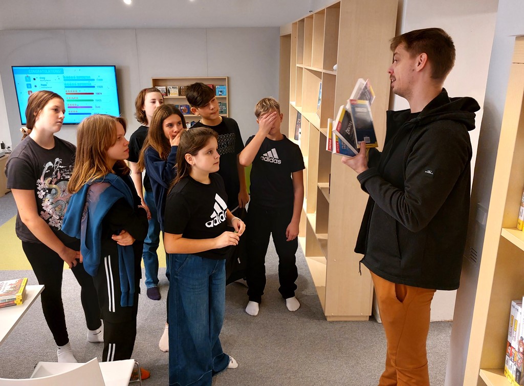 Šesťáci mají možnost dozvědět se řadu zajímavostí nejen o knihách a časopisech, ale také si díky panu „průvodci“ Petru Krumpolcovi prohlédnout místní knihovnu od Oddělení pro děti a mládež až po populární T-klub (nechybí ani nakouknutí do Oddělení pro dospělé).