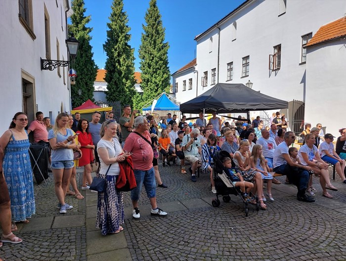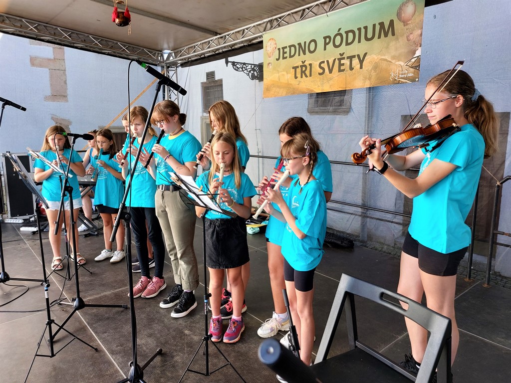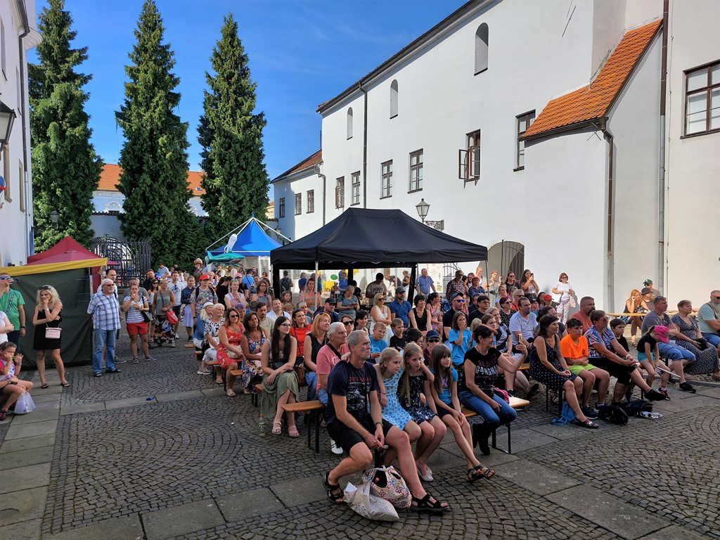 Nejdříve se na II. nádvoří Žerotínského zámku děvčata a chlapci 2. stupně přenesli do historie a v působivém scénickém vystoupení ztvárnili pověst o založení Nového Jičína. Poté pódium ovládli „Hudebníci z Tyršky“. V téměř hodinovém programu se představily jak slečny z kroužku flétniček, tak dívky a statečný hoch z pěveckého sboru. Všichni účinkující předvedli výborný výkon, za což byli na konci odměněni dlouhotrvajícím potleskem publika.