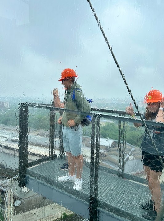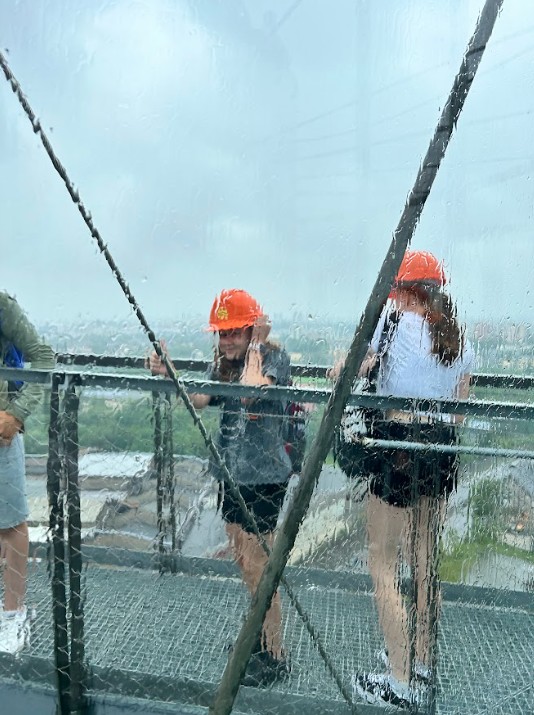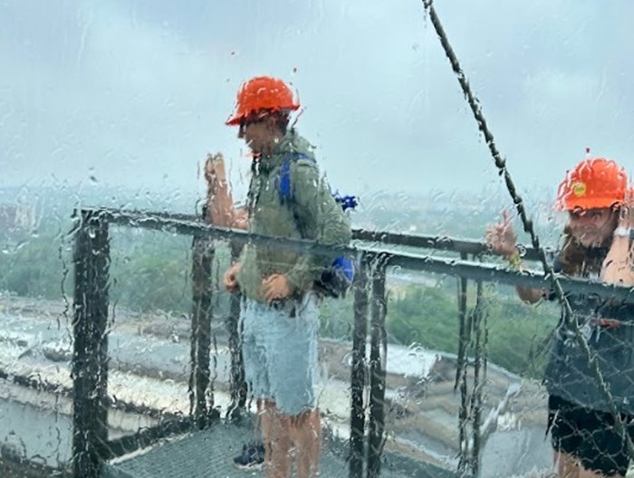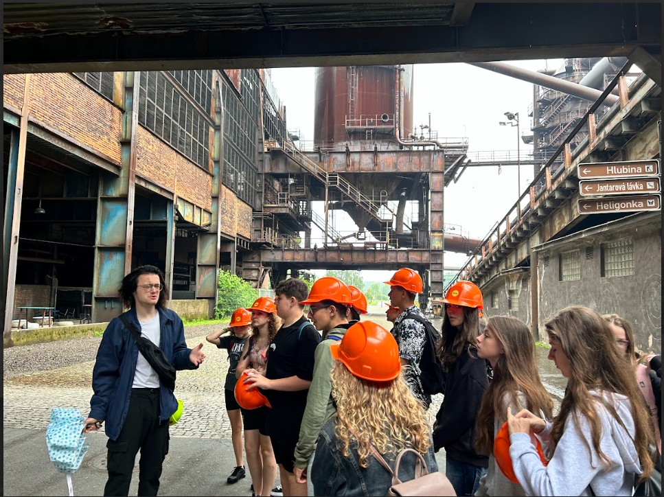 Místo toho jsme se v pondělí 10. června vydali nejprve do průmyslového areálu Dolní Vítkovice v Ostravě, kde jsme absolvovali stominutovou prohlídku vysokopecního okruhu spolu s průvodcem. Měli jsme tak příležitost dozvědět se více o historii Dolních Vítkovic, výrobě surového železa a také z výšky pozorovat propršenou Ostravu z téměř osmdesátimetrové Bolt Tower.