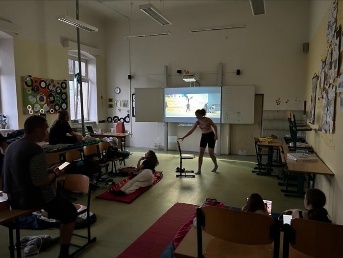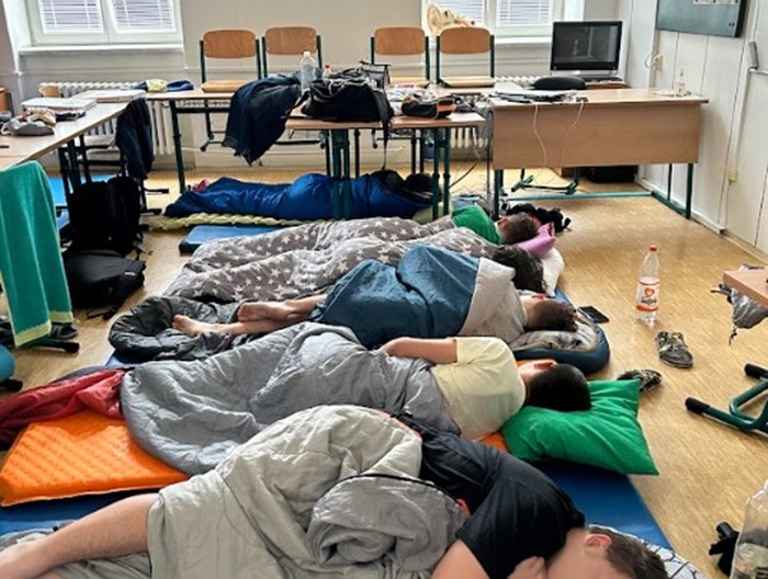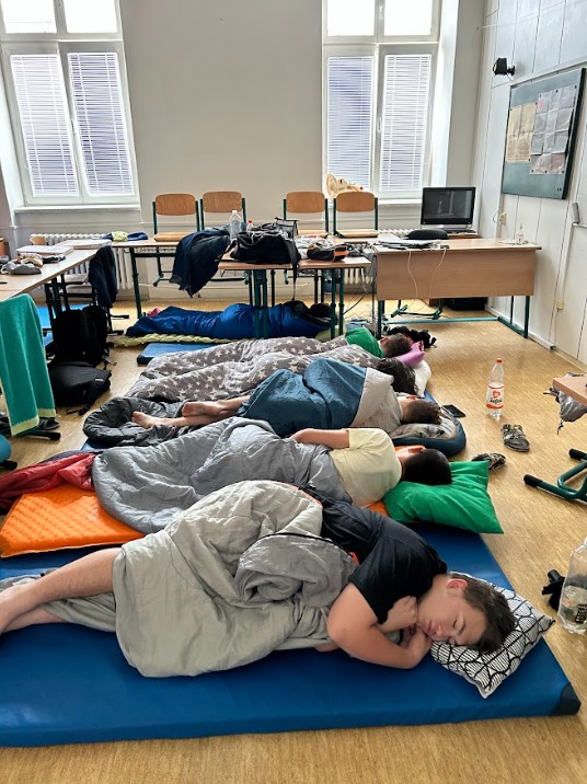 Po návratu do Nového Jičína jsme však nezamířili domů, ale do školy. Ta se totiž stala naší noclehárnou. Užili jsme si tak odpoledne, podvečer a večer ve třídách, hráli deskovky, sledovali reprezentační fotbal i horory, ládovali se pizzou a vnímali školní atmosféru pod rouškou tmy. Spát se šlo až nad ránem, což ke školním přespávačkám prostě patří.