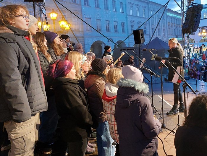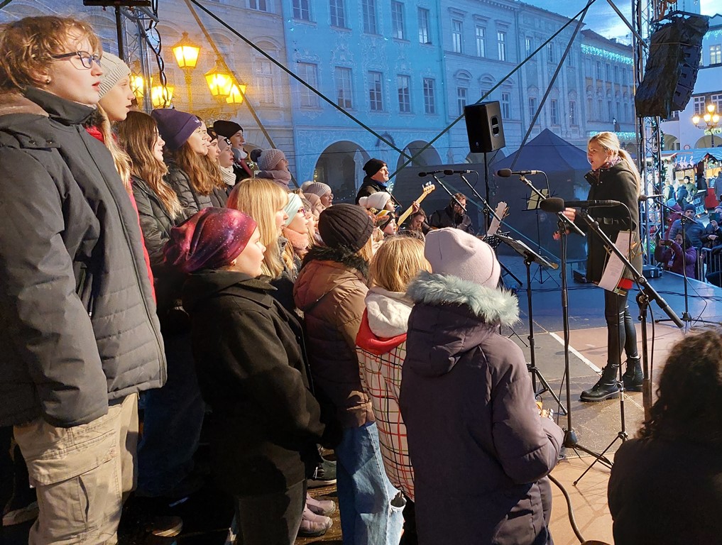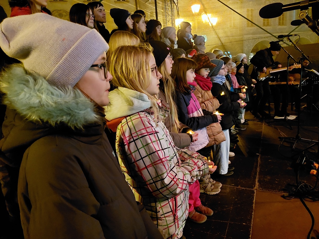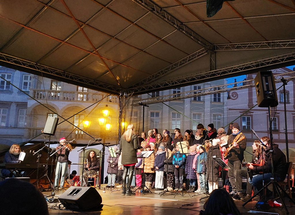 Uběhl další rok a poslední listopadový den začaly v Novém Jičíně adventní trhy. Vyzdobené Masarykovo náměstí, jemuž vévodí nádherný vánoční strom, opět provoněla vůně jehličí, nejrůznějších pokrmů, punčů a sladké medoviny. Součástí předvánočního jarmarku je kulturní program, do něhož se tradičně zapojila také naše škola.