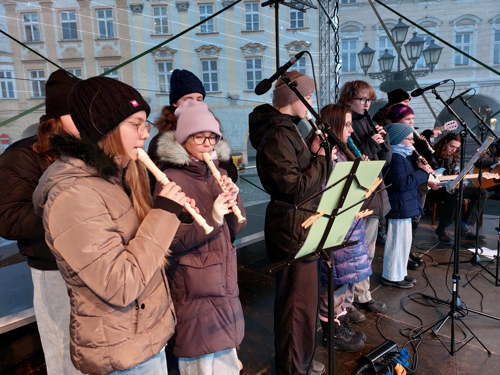 „Hudebníci z Tyršky“ předvedli své muzikantské umění ve zhruba hodinovém koncertu ve středu 18. prosince 2024. Nejprve se přihlížejícím divákům představila děvčata z kroužku flétniček, která se svou vedoucí paní učitelkou Veronikou Barošovou zahrála známé i méně známé koledy a vánoční skladby.