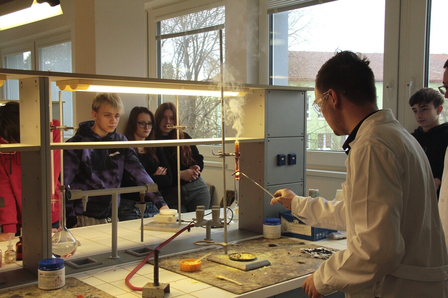 Poté, co mladí chemici vypracovali soutěžní testy zaměřené na úkoly z obecné a anorganické chemie, názvosloví a také na chemické výpočty, mohli ještě zhlédnout ukázky efektních pokusů, které jim předváděli žáci SPŠ Hranice a sami soutěžící si mohli některé chemické pokusy vyzkoušet a ověřit si svou zručnost přímo v chemické laboratoři.