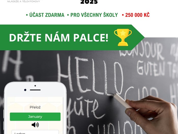JAZYKOVÝ WOCABEE ŠAMPIONÁT 2025 probíhá pod záštitou Ministerstva školství ČR. V soutěži hrajeme o hodnotné ceny a 250 000 Kč na modernizaci školy. Online aplikace WocaBee vznikla ve spolupráci s učiteli z ČR a používají ji školy v 10 zemích EU. Žáci se na mobilu, tabletu nebo počítač učí slovíčka, výslovnost a díky umělé inteligenci (AI) mohou s aplikací také konverzovat v cizím jazyce!