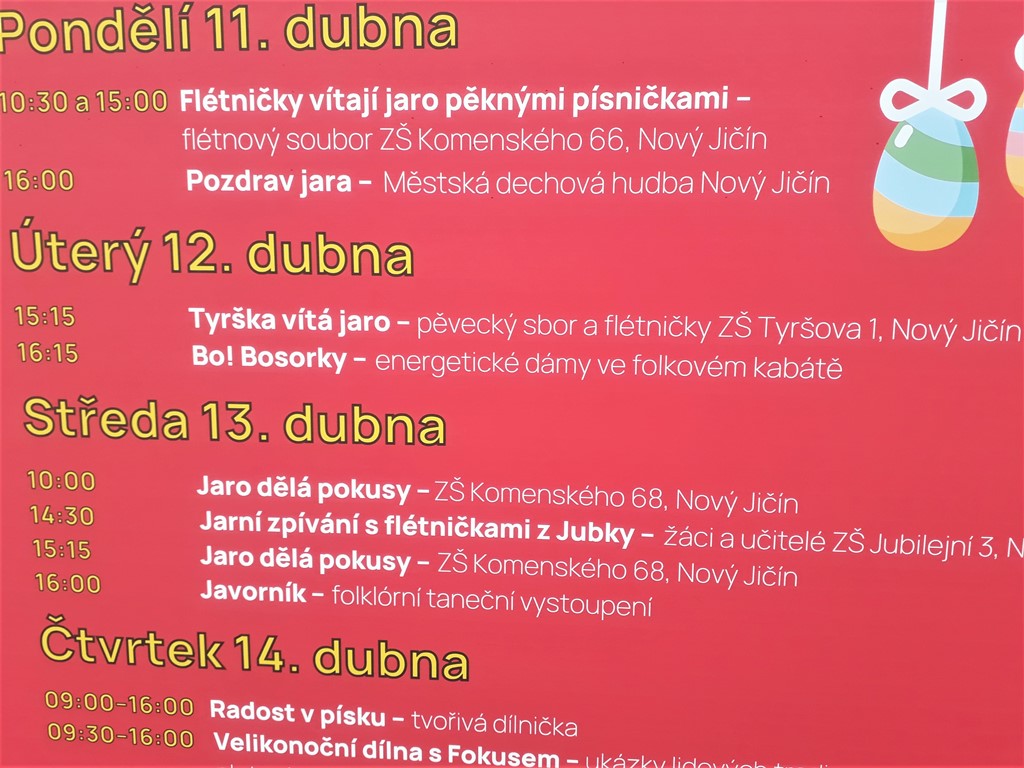 Do kulturního programu, který probíhá na Masarykově náměstí v rámci Novojičínského velikonočního jarmarku, se v úterý 12. dubna 2022 zapojila také naše škola s pořadem „Tyrška vítá jaro“. A nutno říct, že kulturní vyslanci ZŠ Tyršova svůj výchovně vzdělávací ústav reprezentovali víc než důstojně.