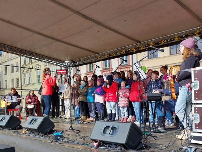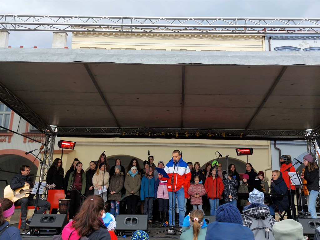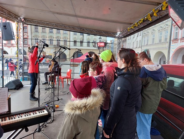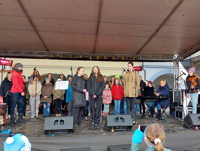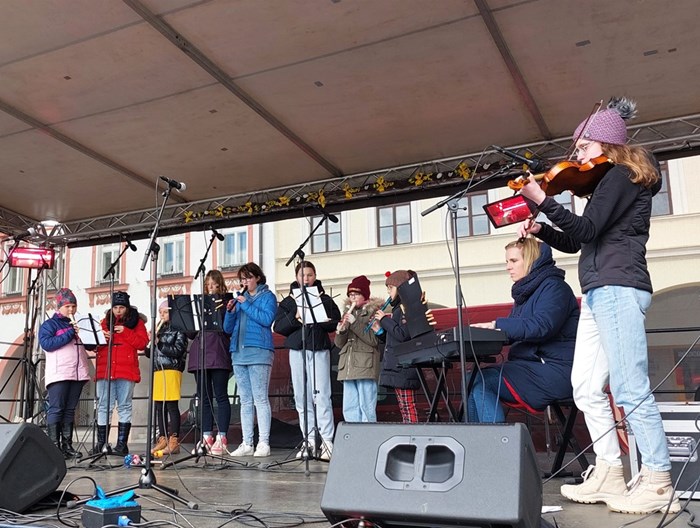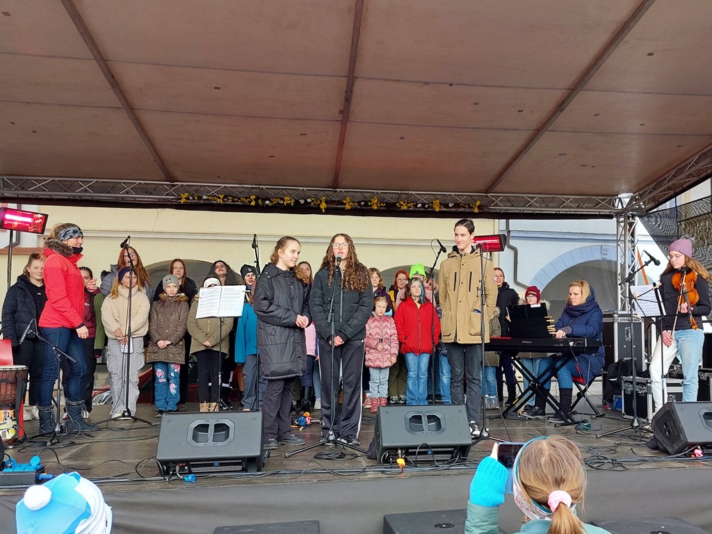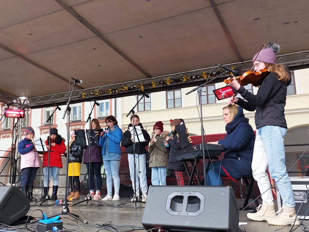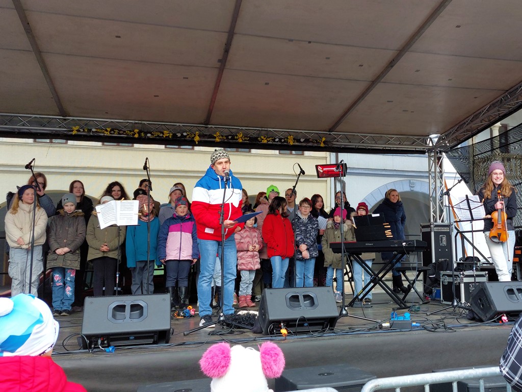 Do kulturního programu, který na Masarykově náměstí probíhá v rámci Novojičínského velikonočního jarmarku, se na tzv. „šedivé úterý“ (4. dubna 2023) zapojila také naše škola. A nutno říct, že hudebníci z Tyršky svůj výchovně vzdělávací ústav i přes velkou zimu reprezentovali víc než důstojně. Nejdříve se divákům představily dívky navštěvující kroužek flétniček, který vede paní učitelka Veronika Barošová. Holky vybrané skladby zvládly s přehledem a za svůj výkon se dočkaly velkého potlesku. Pak už na pódium nastoupil pěvecký sbor tvořený děvčaty a chlapci z 1. a 2. stupně, jemuž velí paní učitelka Eva Červenková. Ta pro velikonoční vystoupení vybrala pohodové a zároveň velmi melodické písničky, za jejichž povedené provedení byl sbor odměňován častým potleskem přihlížejících diváků. Co říci závěrem? Všem účinkujícím (jak dětem, tak doprovázejícím „dospělákům“) patří za pečlivou přípravu a vydařené vystoupení velký dík.
