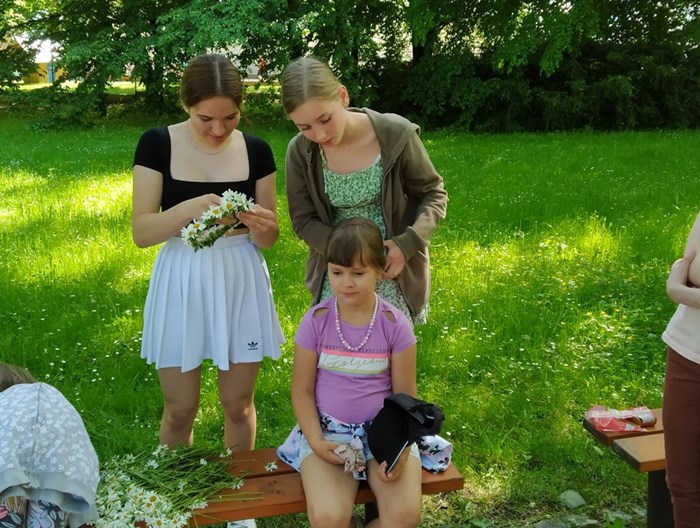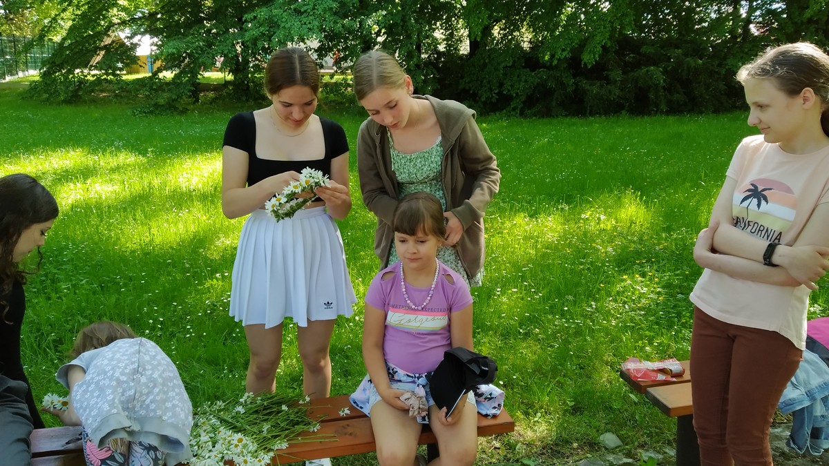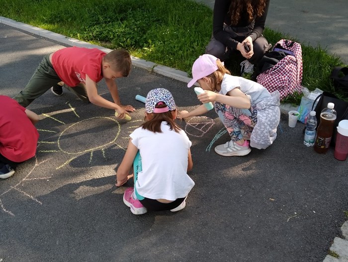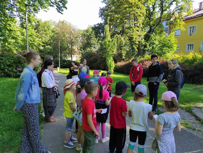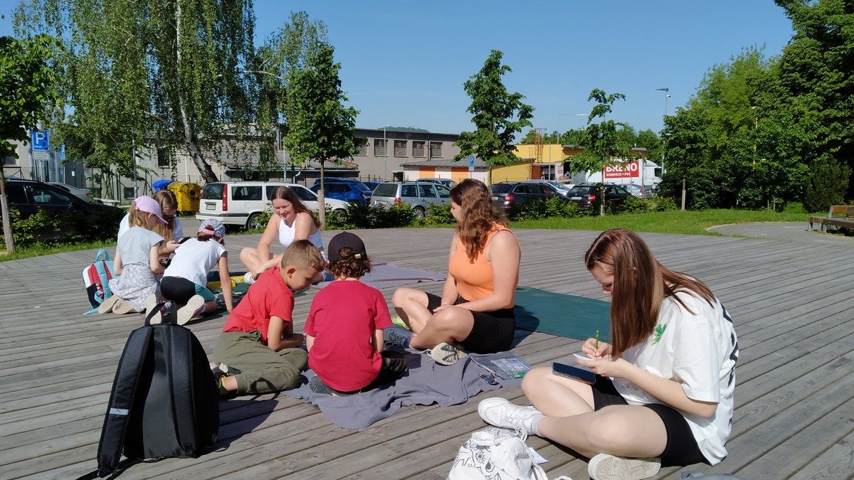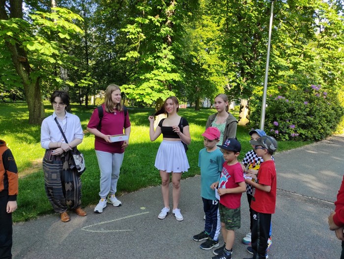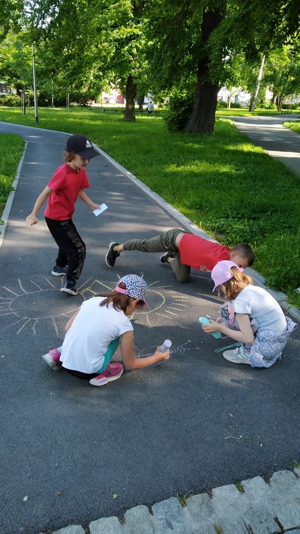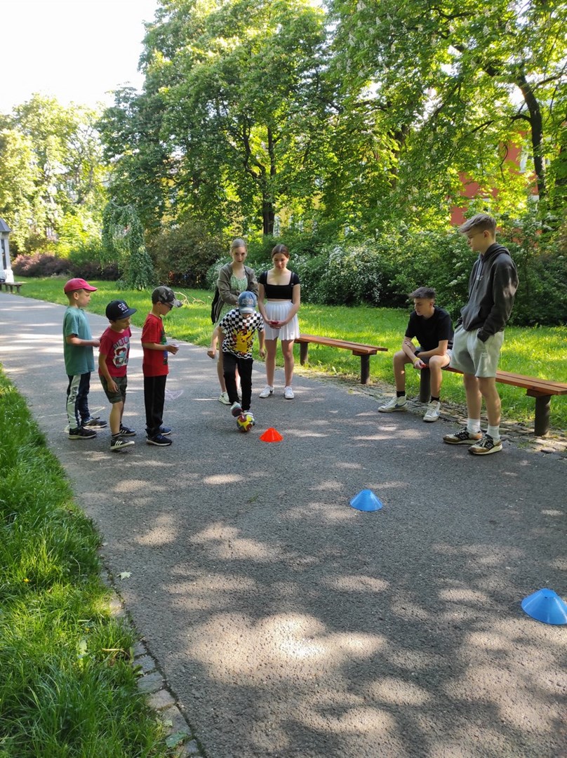 Ráno jsme se sešli ve Smetanových sadech, kde začínala naše trasa. Týmy postupně procházely parkem a cestou plnily nejrůznější úkoly. Největší úspěch měla disciplína s přenášením vody. V cíli na prvňáčky čekalo vyhodnocení soutěží a odměna ve formě dobrot. Nechybělo ani dětské šampaňské. Děti si pak chvíli odpočinuly u společenských her, ale to jen proto, aby nabraly síly na další aktivity. Kluky čekal fotbalový zápas. Velcí si vzali na starost malé a vznikla nám dvě smíšená družstva. Netradiční utkání mělo u všech fotbalistů veliký úspěch. Holky se věnovaly pletení věnečků z kopretin a nakonec si zahrály živé „Člověče, nezlob se".