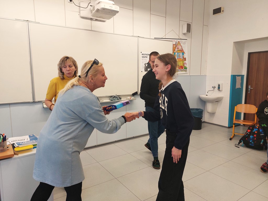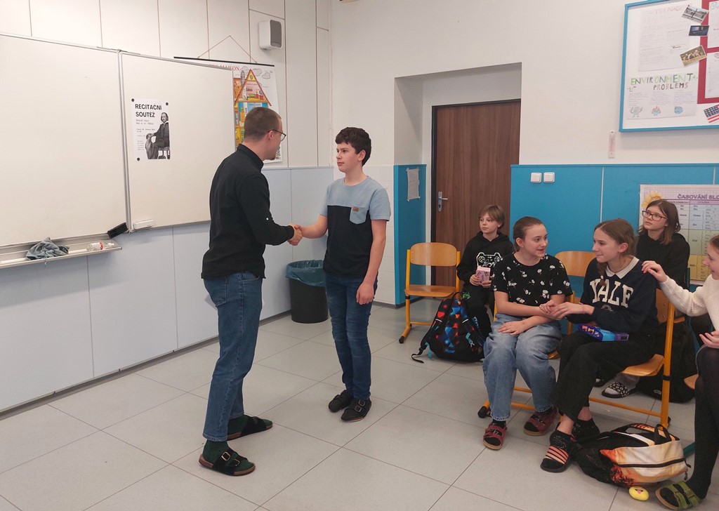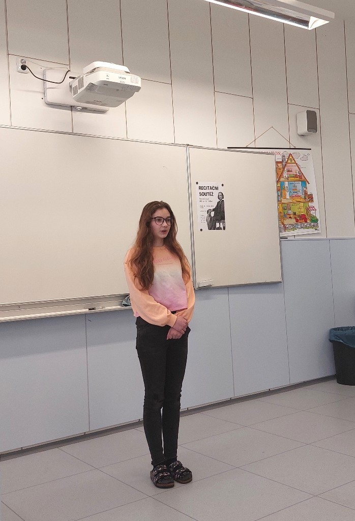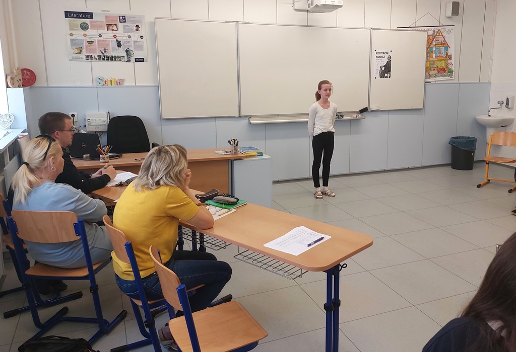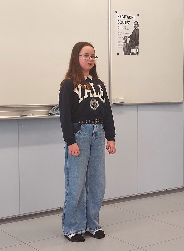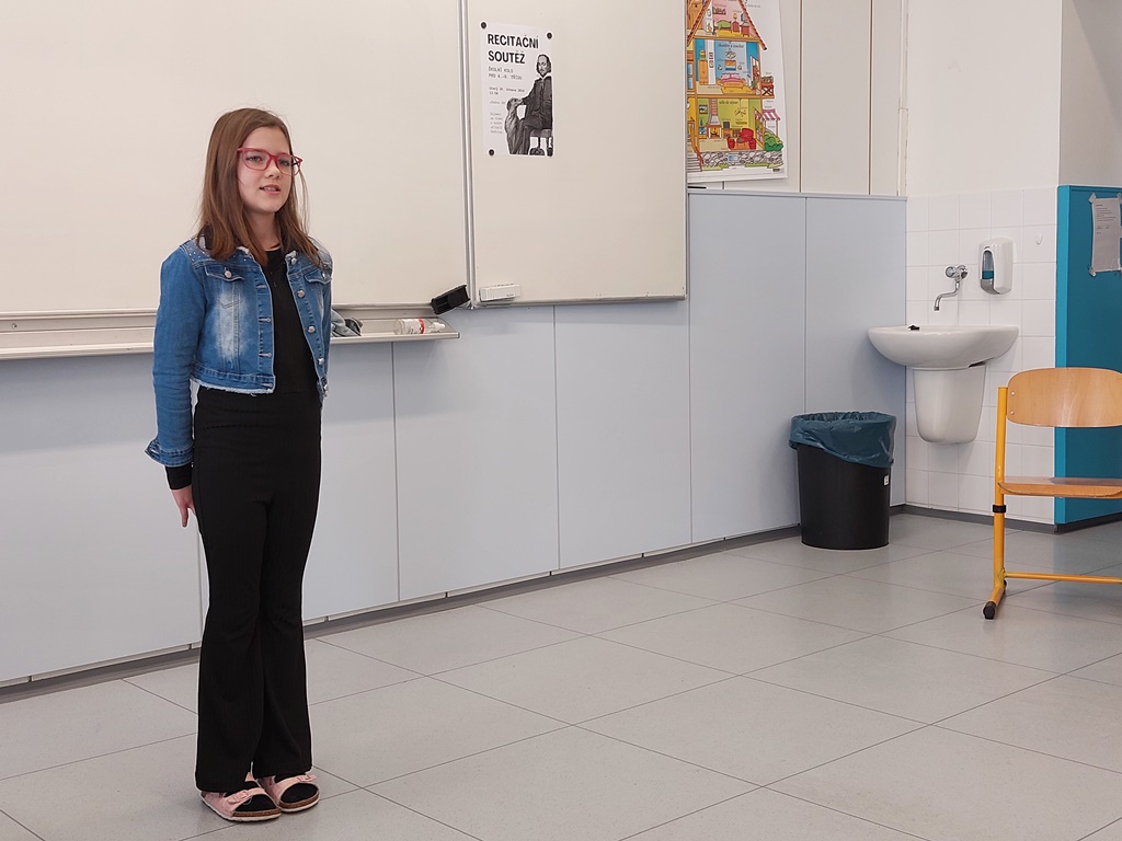 Ve 3. kategorii dětí z 6. a 7. tříd uspěl na prvním místě Jan Morys (6.C), jenž výrazně zaujal Seifertovou básní Housle. Druhé místo si z recitační soutěže pak odnesla Eliška Jaroňová (6.B) s textem Miloše Kratochvíla Ztracená teta. Oba žáci zaslouženě postoupili do okrskového kola. Třetí místo poté udělalo radost Štěpánu Krumpolcovi (6.A).