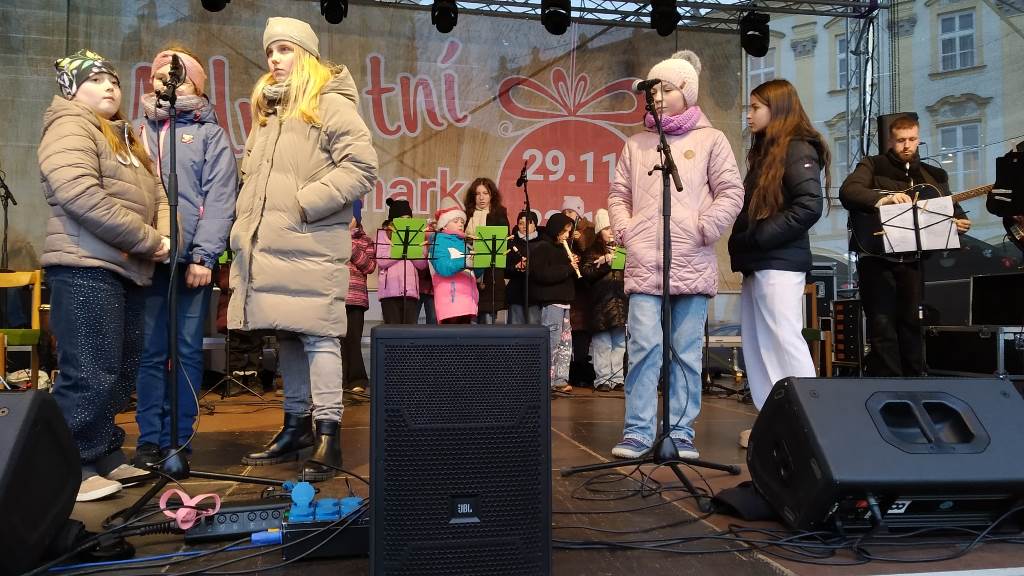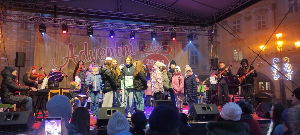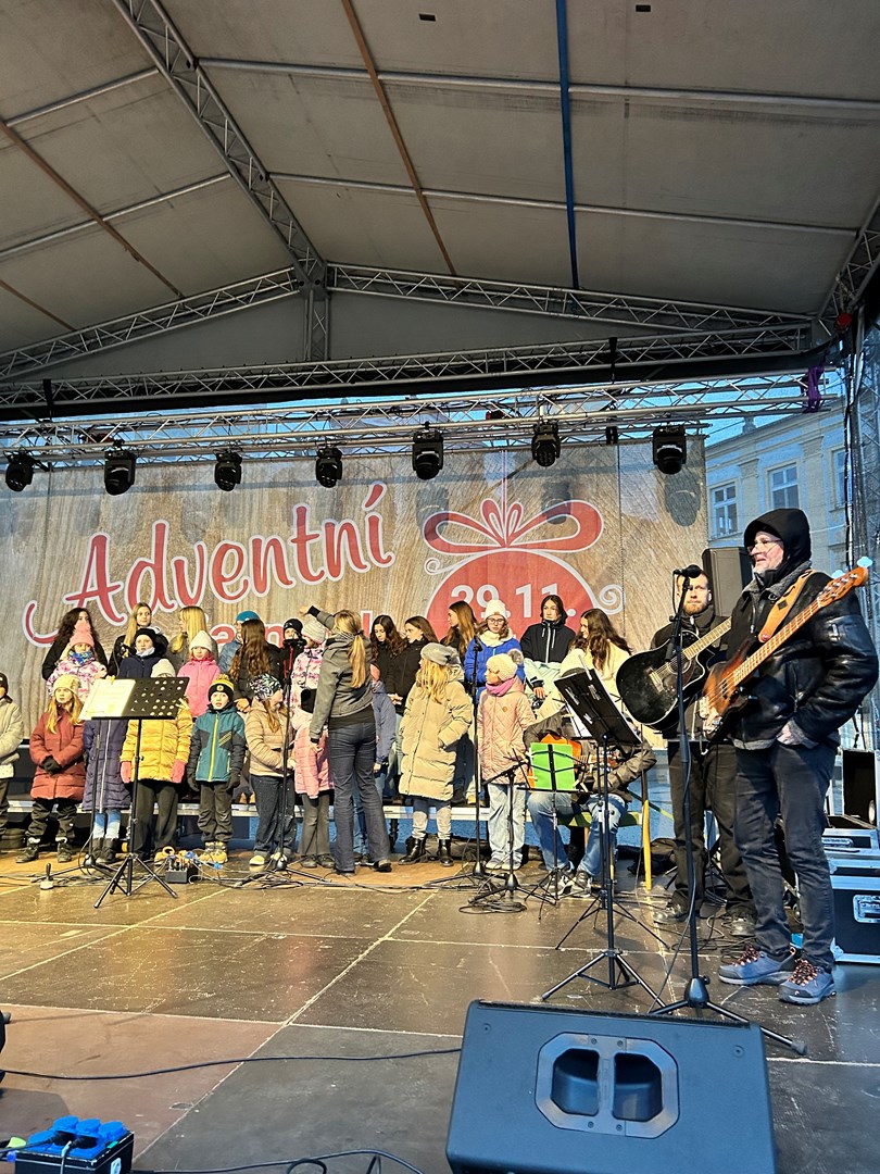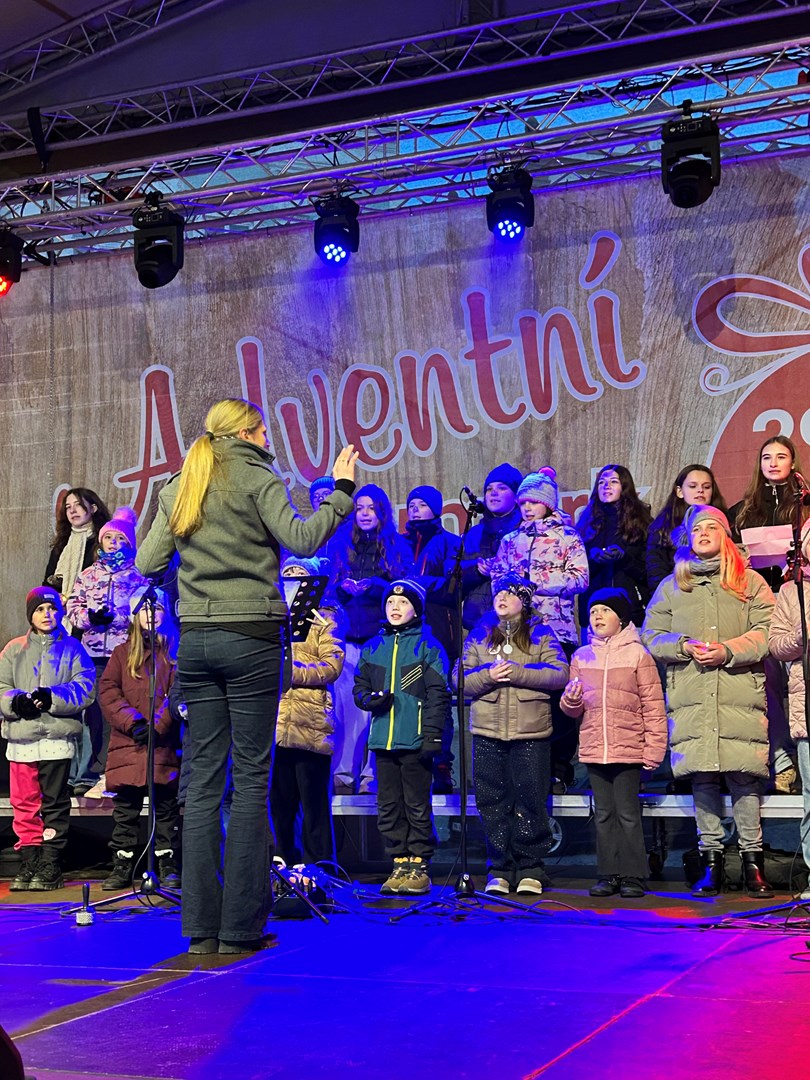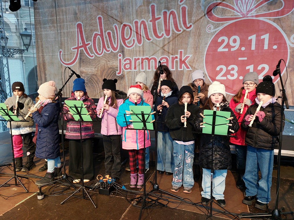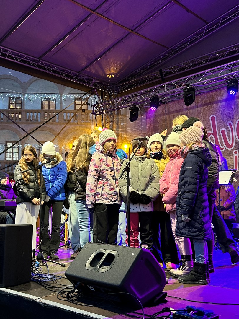 Rok se s rokem sešel a předposlední listopadový den začaly v Novém Jičíně tradiční adventní trhy. Vyzdobené Masarykovo náměstí, jemuž vévodí nádherný vánoční strom, opět provoněla vůně jehličí, rozmanitých pokrmů, svařáků, punčů a sladké medoviny. Součástí předvánočního jarmarku je také bohatý kulturní program (letos opravdu velmi solidně obsazený – například skupiny Fleret a Poetika, Tereza Mašková, Adam Mišík či Jaroslav Uhlíř s kapelou), do něhož se tradičně zapojila i naše škola.