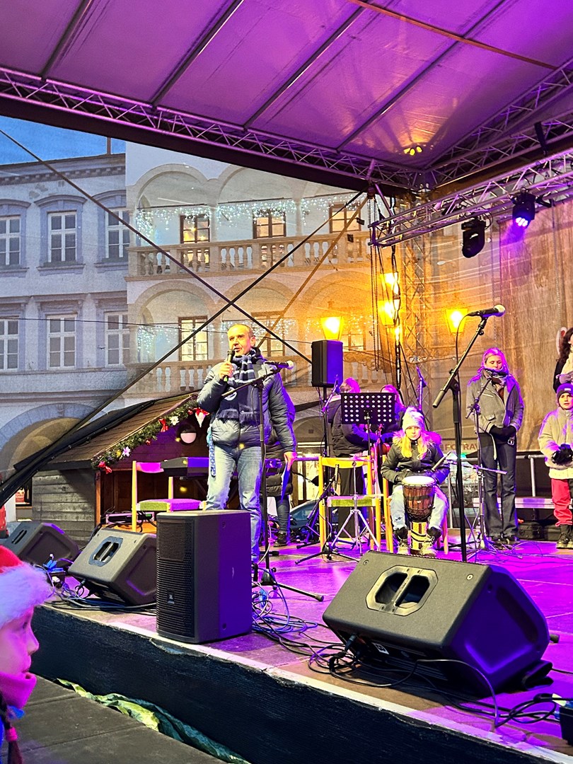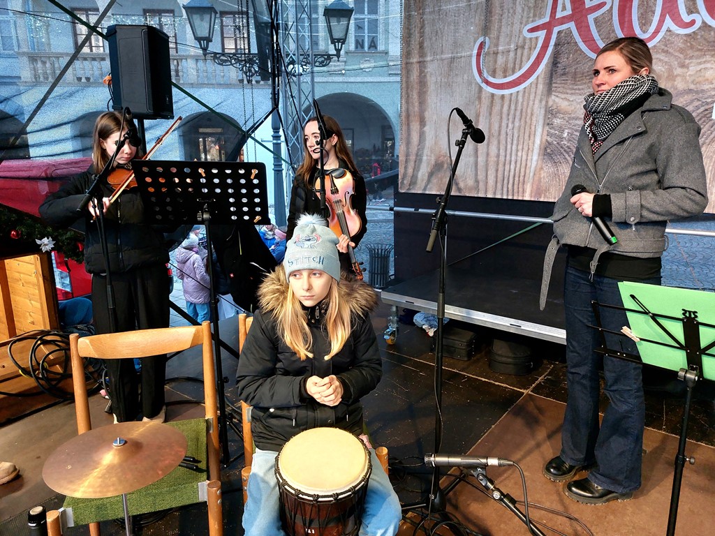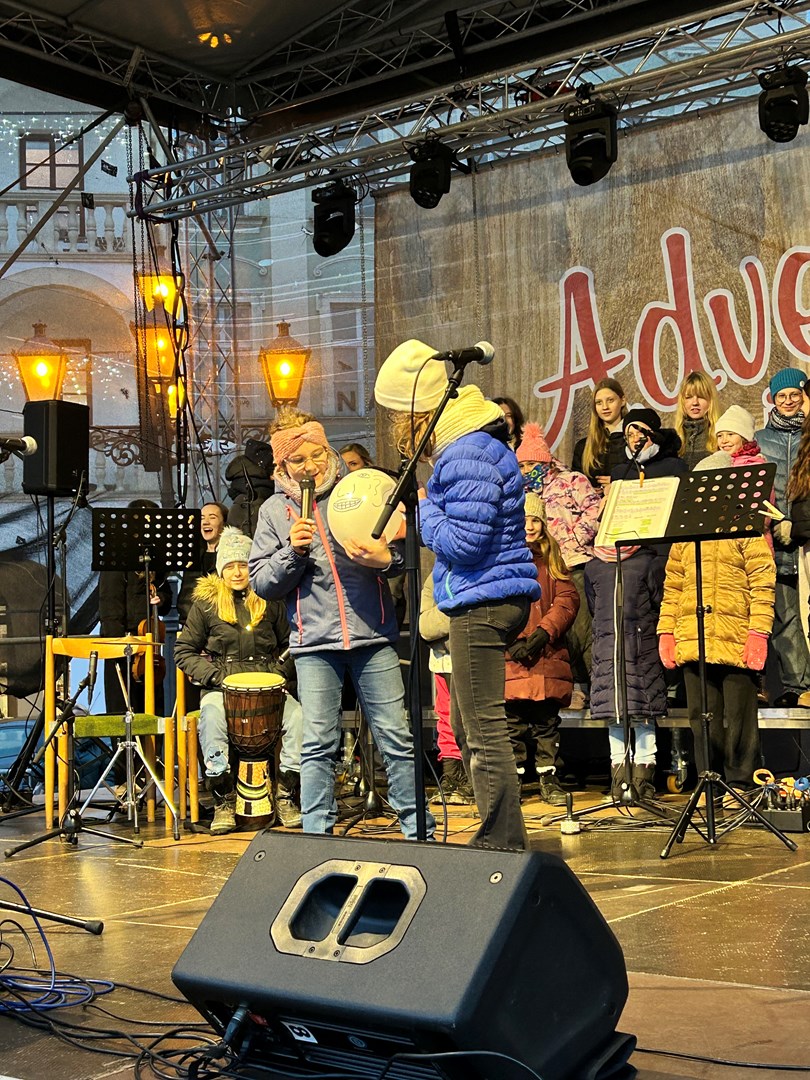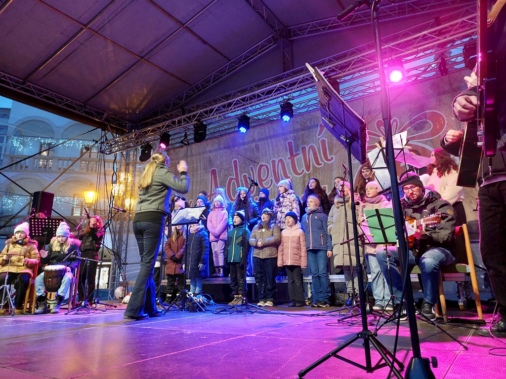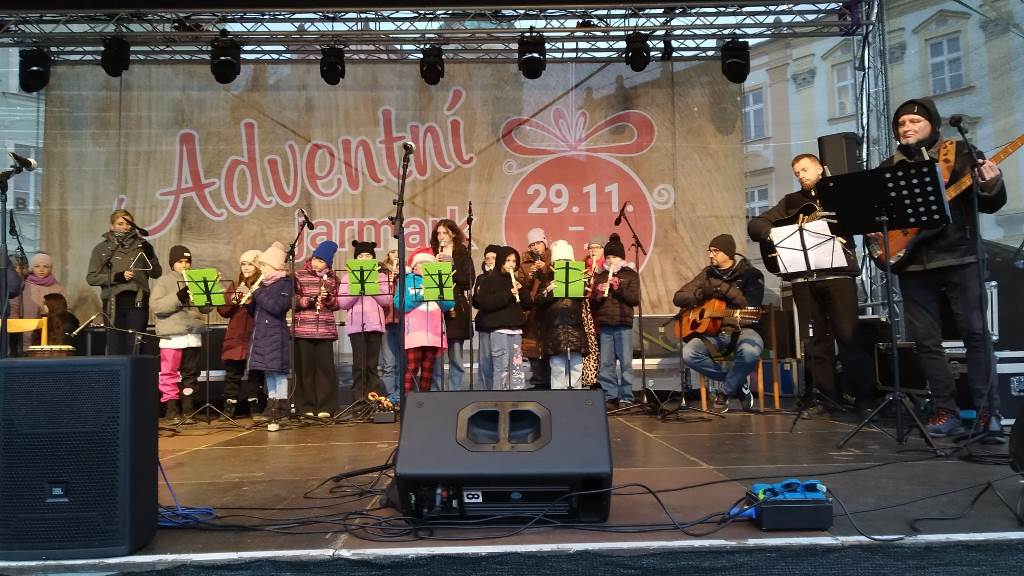 Rok se s rokem sešel a předposlední listopadový den začaly v Novém Jičíně tradiční adventní trhy. Vyzdobené Masarykovo náměstí, jemuž vévodí nádherný vánoční strom, opět provoněla vůně jehličí, rozmanitých pokrmů, svařáků, punčů a sladké medoviny. Součástí předvánočního jarmarku je také bohatý kulturní program (letos opravdu velmi solidně obsazený – například skupiny Fleret a Poetika, Tereza Mašková, Adam Mišík či Jaroslav Uhlíř s kapelou), do něhož se tradičně zapojila i naše škola.