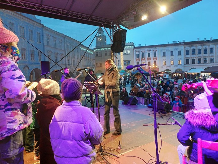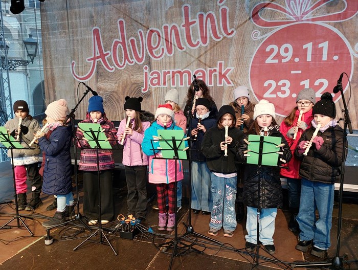 Zdařilá vystoupení flétniček a pěveckého sboru na Masarykově náměstí.