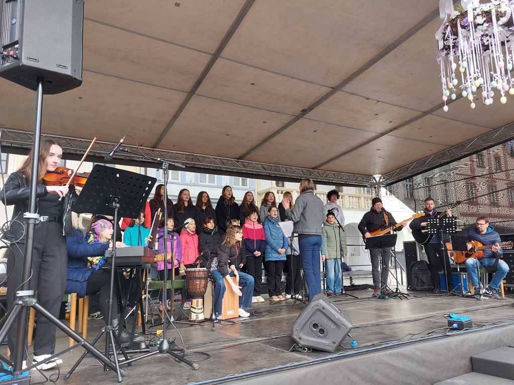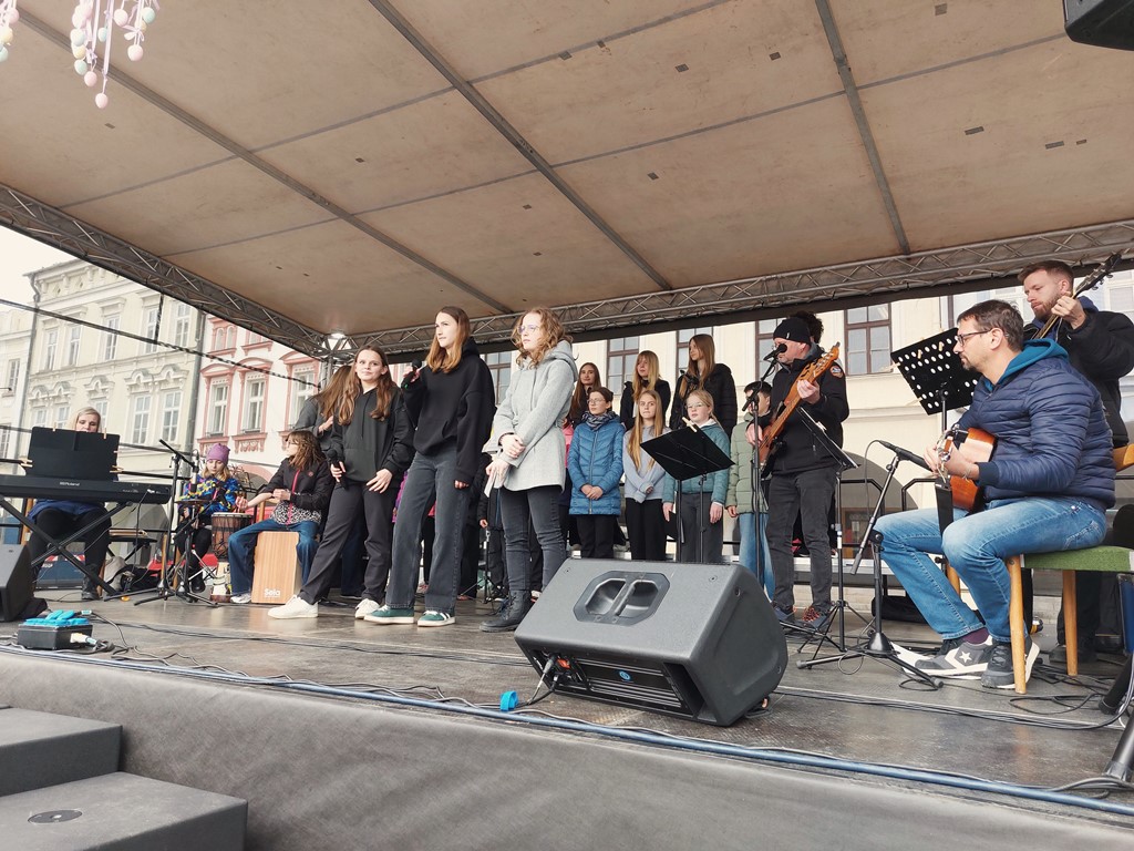 Ve středu 1. dubna 2026 pak na náměstí odstartoval tradiční Velikonoční jarmark. Úvodní den patřil především vystoupením novojičínských základních škol, mezi nimiž nechyběli ani „Hudebníci z Tyršky“.